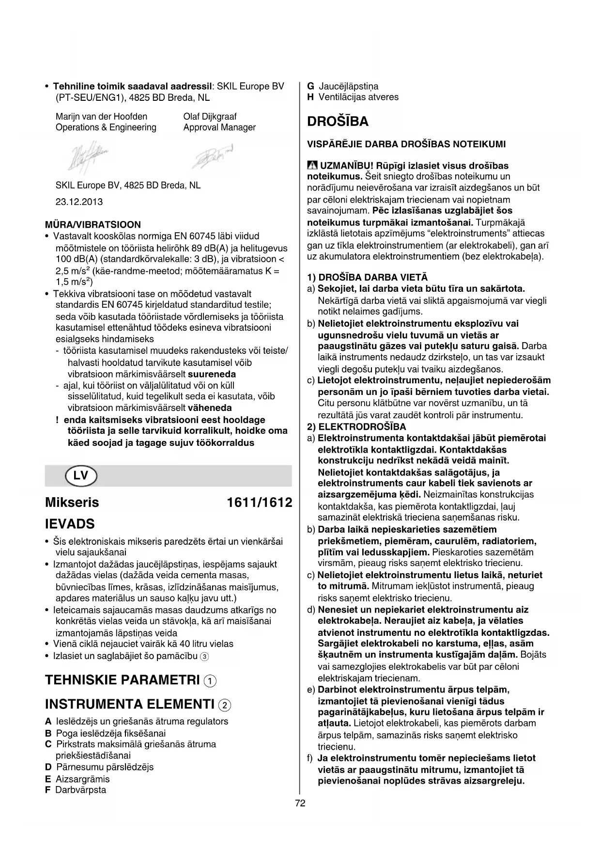 - Tehniskā dokumentácija no: SKIL Europe BV (PT-SEU/ENG1), 4825 BD Breda, NL