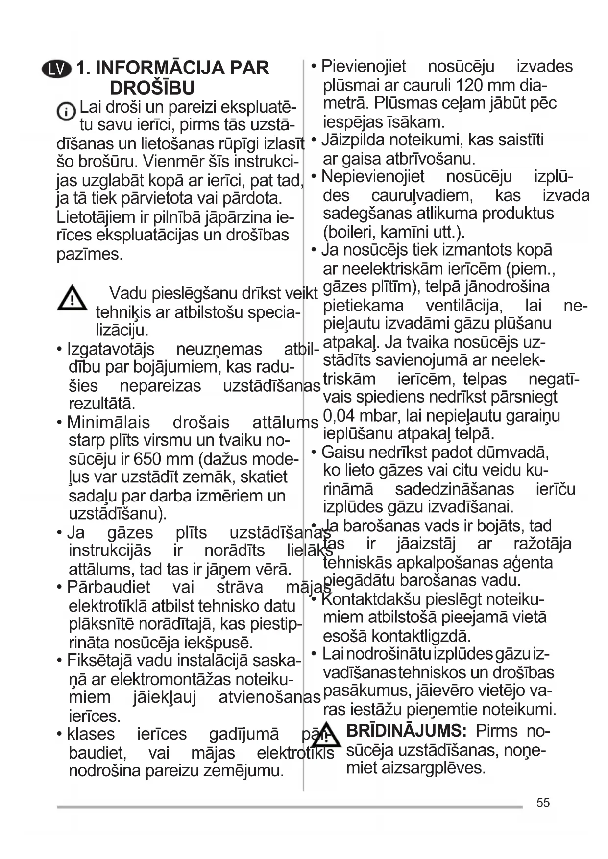 - Nepievienojiet nosūcēju izplū- des cauruļvadiem, kas izvada sadegšanasatlikumaproduktus (boileri,kamīniutt.).