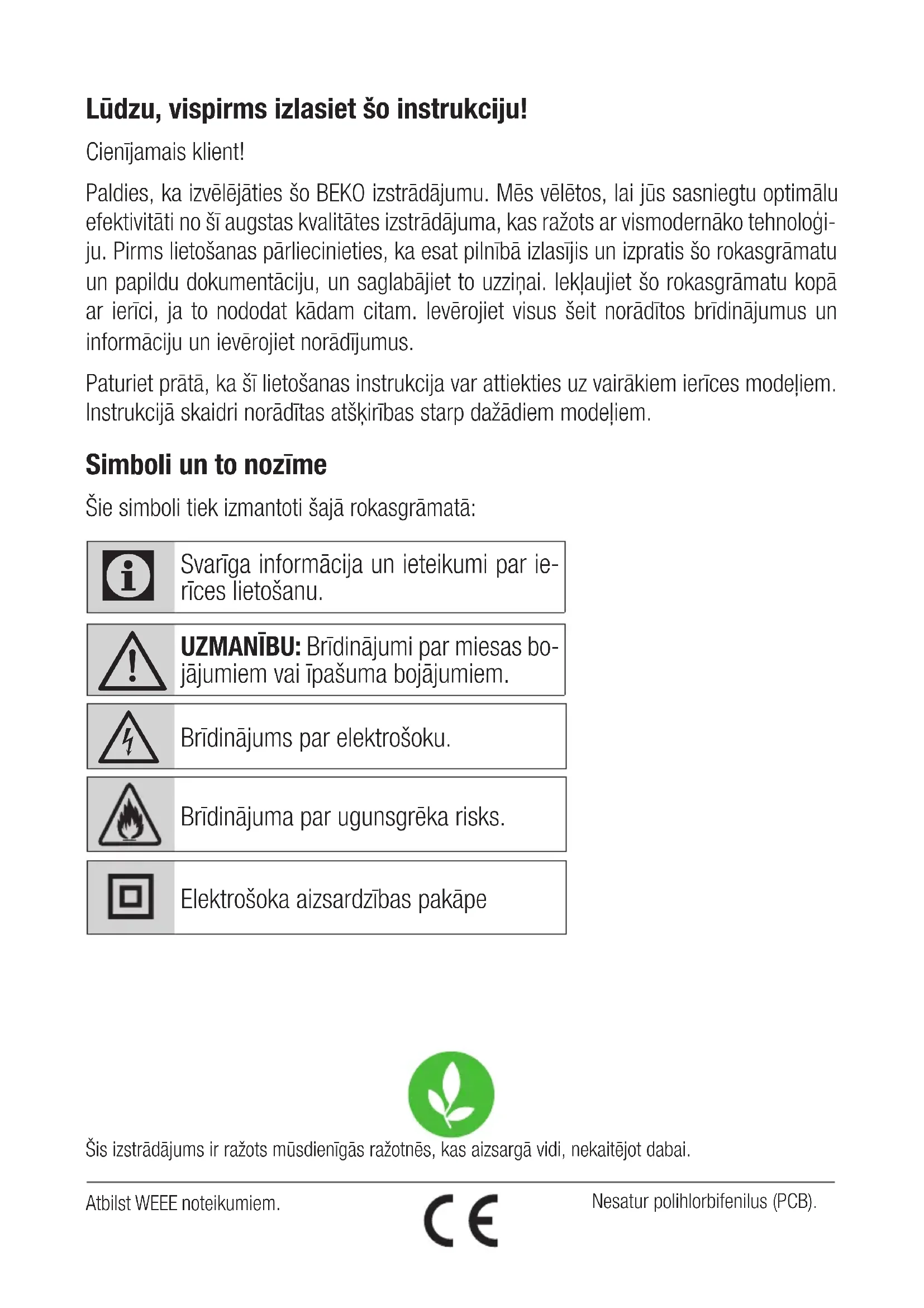 Svarīgas drošības un vides instrukcijas