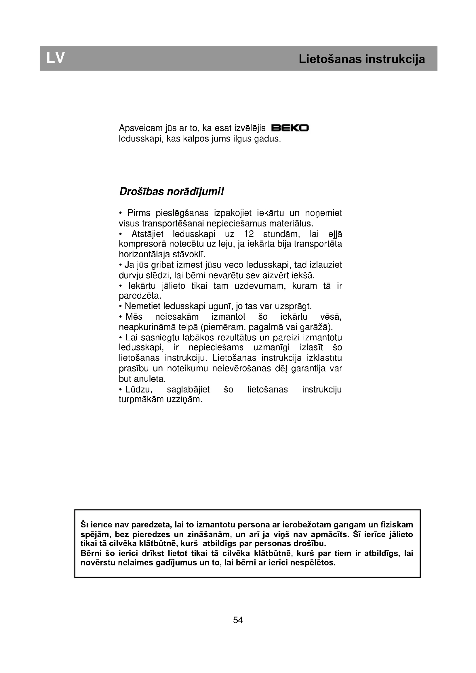 - Lūdzu, saglabājiet šo lietošanas instrukciju turpmākām uzziņām.