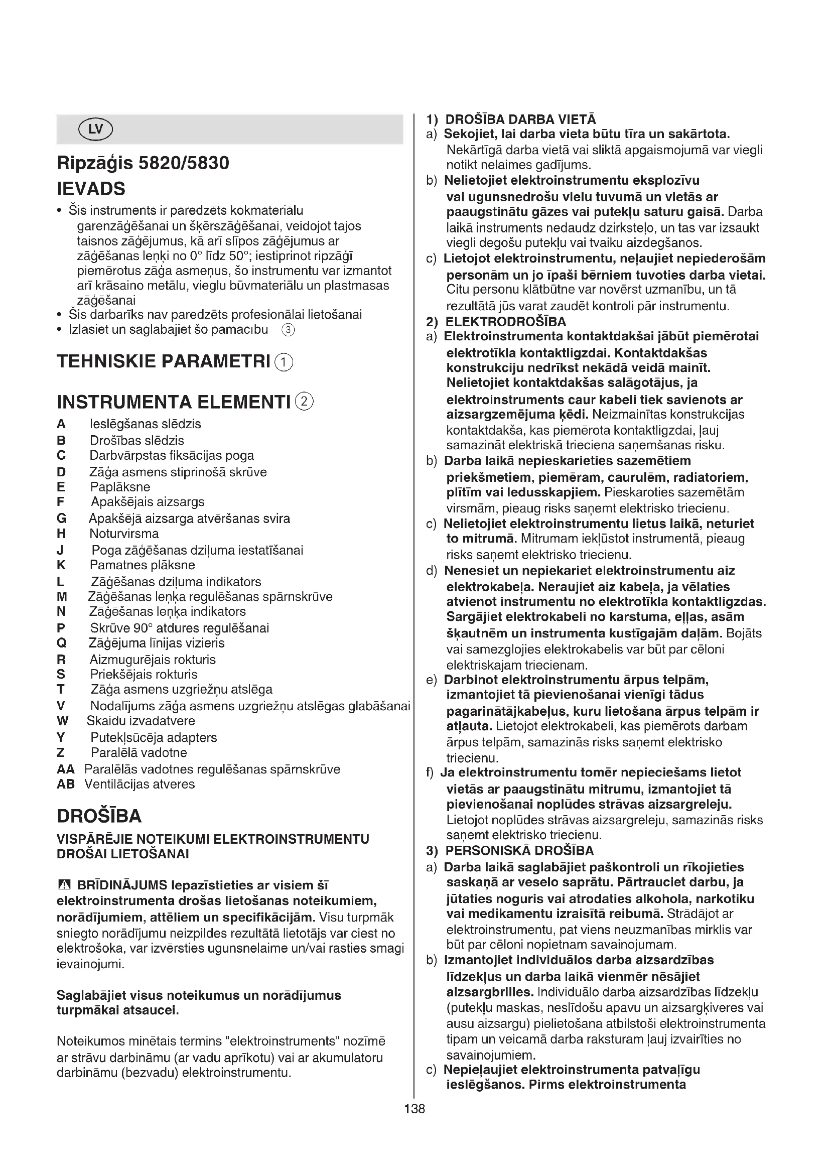 LIETOŠANAS INSTRUKCIJA 5830 GA SKIL