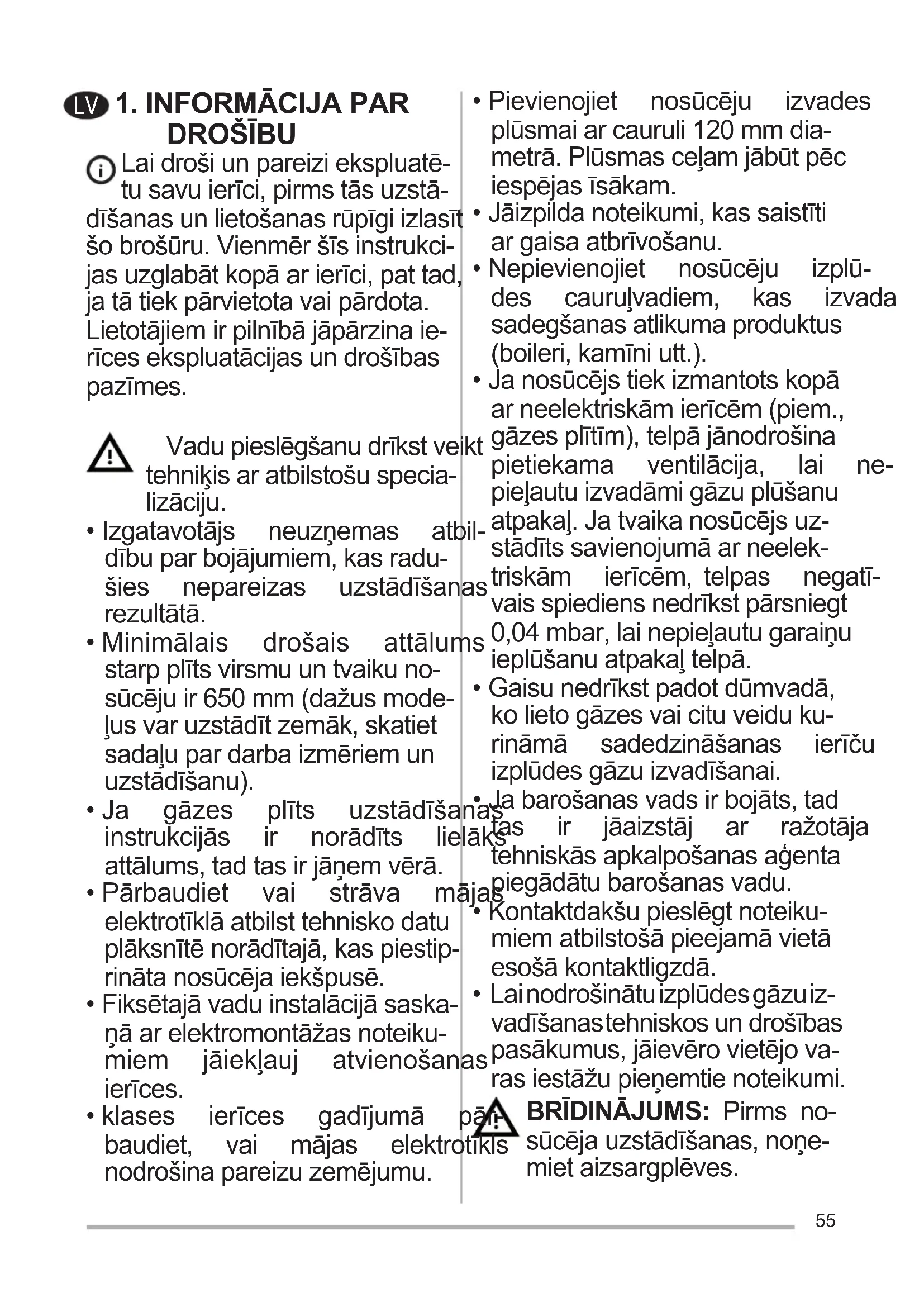 - Nepievienojiet nosūcēju izplū- des cauruļvadiem, kas izvada sadegšanasatlikumaproduktus (boileri,kamīniutt.).