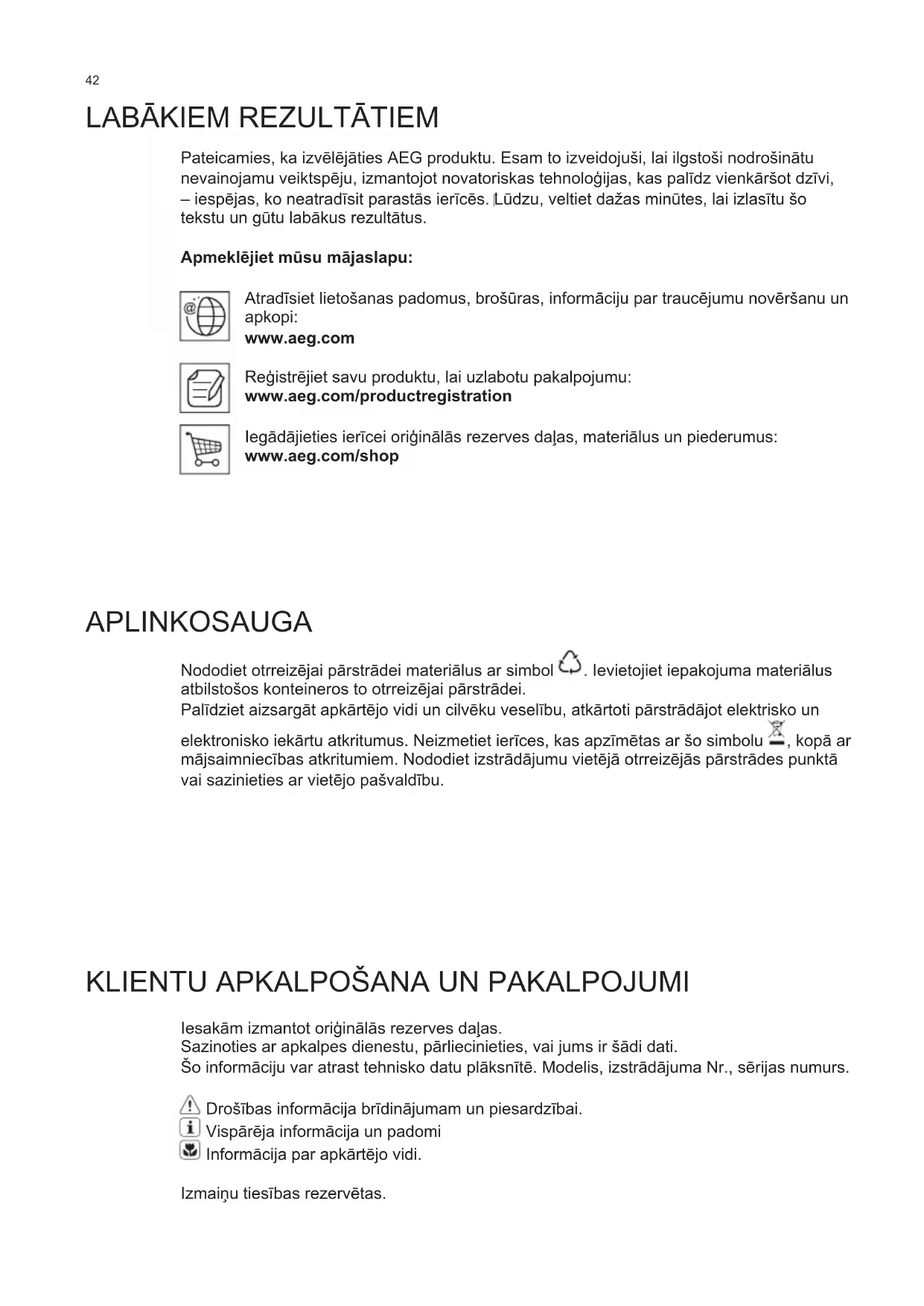 Iesakām izmantot oriģinālās rezerves daļas. Sazinoties ar apkalpes dienestu, pārliecinieties, vai jums ir šādi dati. Šo informāciju var atrast tehnisko datu plāksnītē. Modelis, izstrādājuma Nr., sērijas numurs. Drošības informācija brīdinājumam un piesardzībai. Vispārēja informācija un padomi Informācija par apkārtējo vidi. Izmaiņu tiesības rezervētas.
