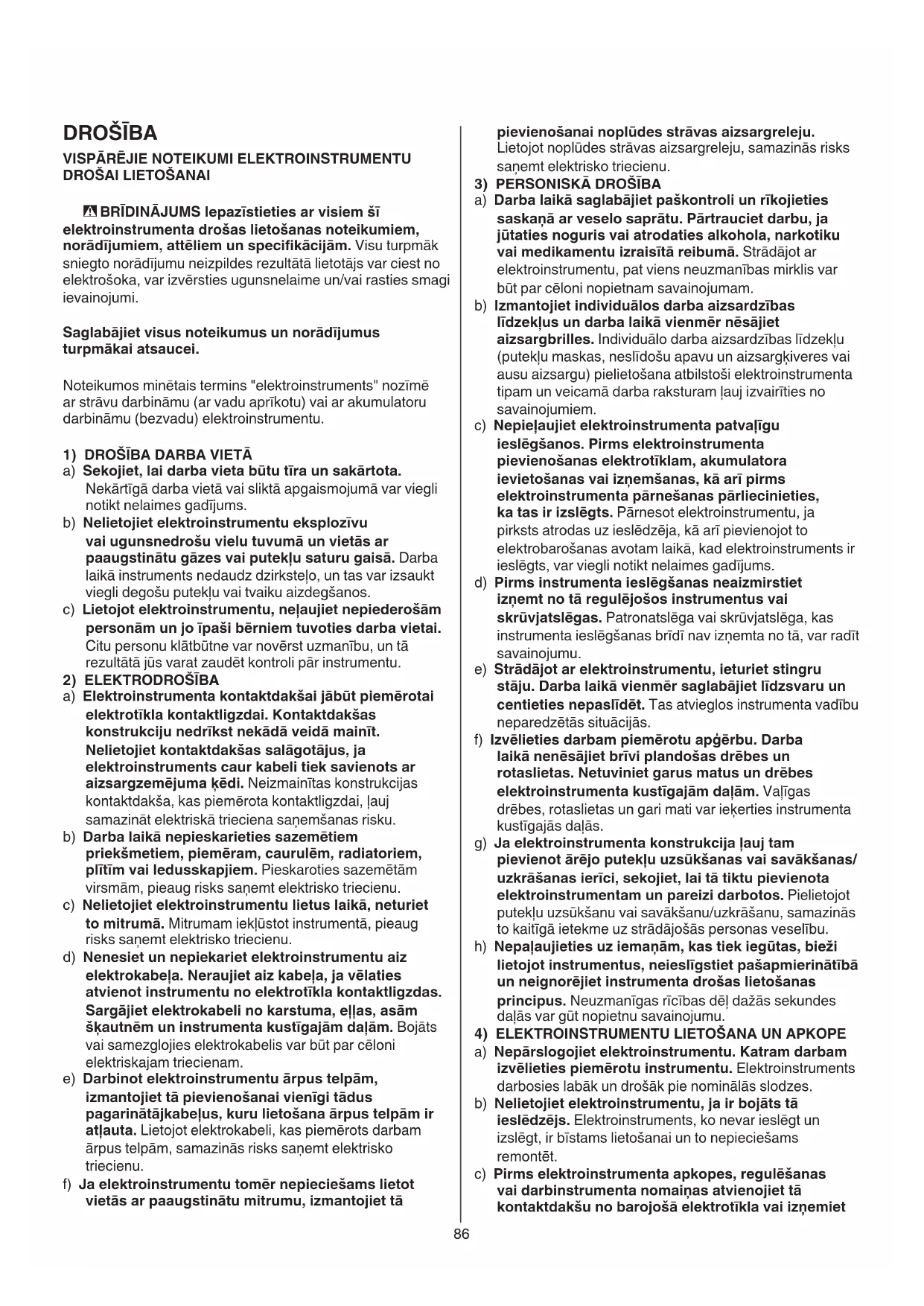 4) ELEKTROINSTRUMENTU LIETOŠANA UN APKOPE