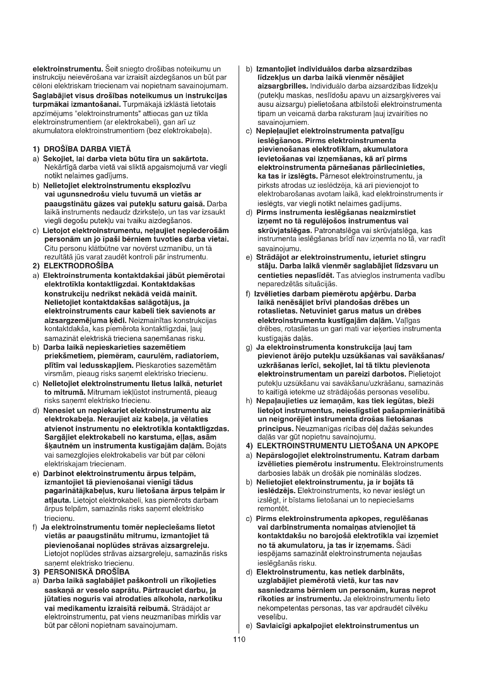 4) ELEKTROINSTRUMENTU LIETOŠANA UN APKOPE