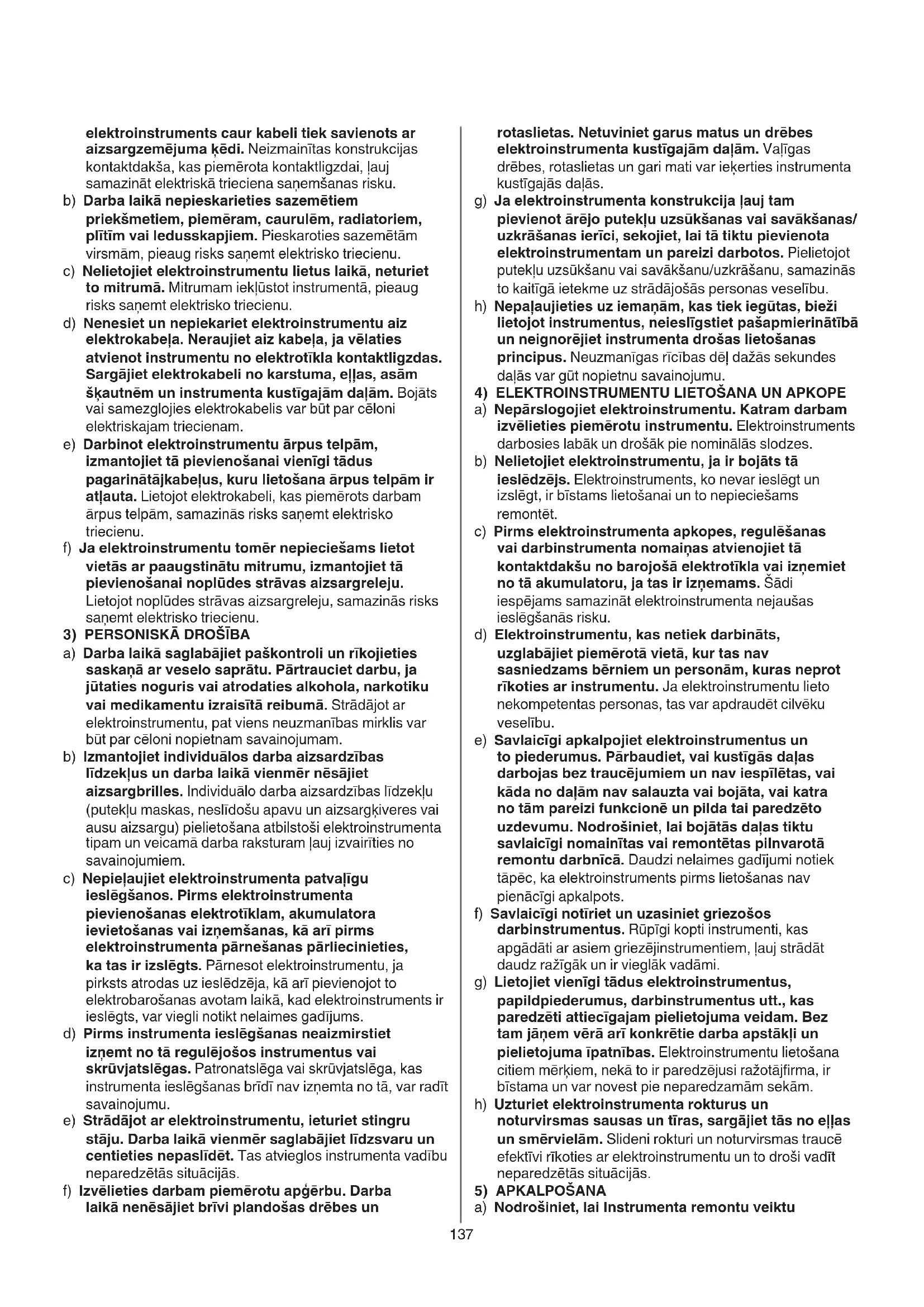 4) ELEKTROINSTRUMENTU LIETOŠANA UN APKOPE