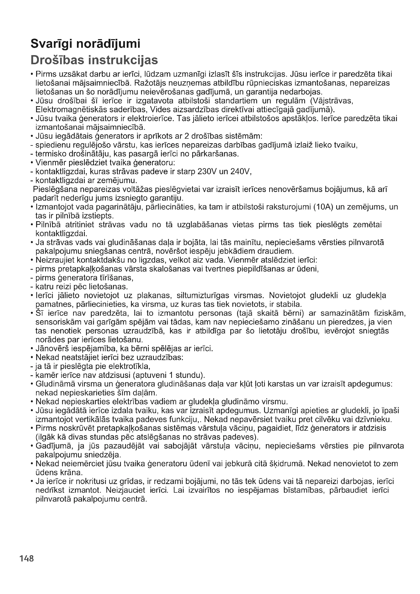 - Jūsu iegādātais ģenerators ir aprīkots ar 2 drošības sistēmām: - spiedienu regulējošo vārstu, kas ierīces nepareizas darbības gadījumā izlaiž lieko tvaiku, - termisko drošinātāju, kas pasargā ierīci no pārkaršanas.