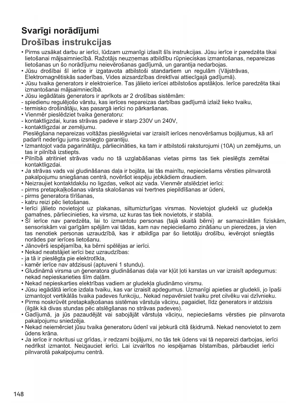 - Jūsu iegādātais ģenerators ir aprīkots ar 2 drošības sistēmām: - spiedienu regulējošo vārstu, kas ierīces nepareizas darbības gadījumā izlaiž lieko tvaiku, - termisko drošinātāju, kas pasargā ierīci no pārkaršanas.