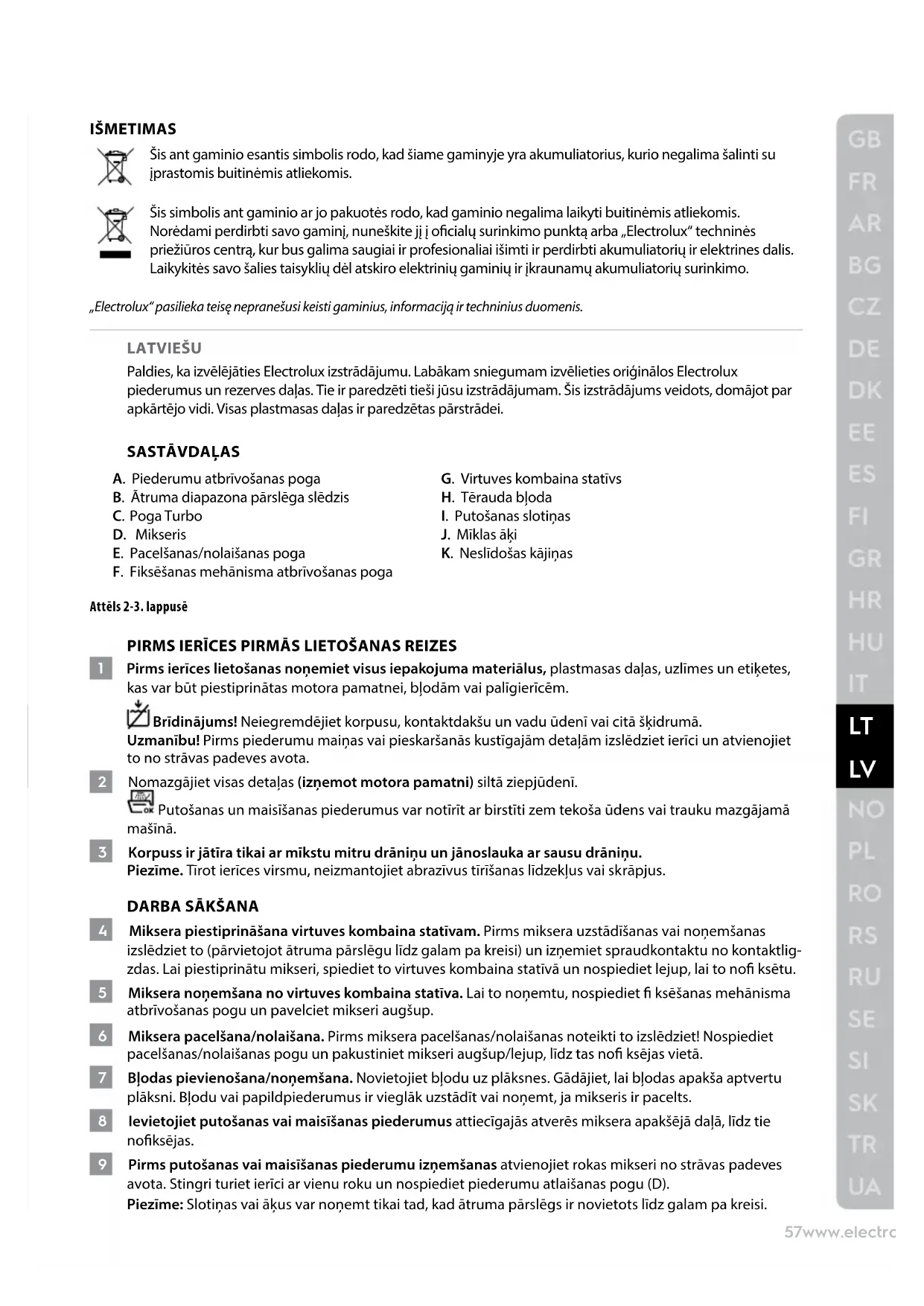- Ierīce ir paredzēta lietošanai tikai mājās. Ražotājs neuzņemas atbildību par bojājumiem, kas radušies ierīces nepareizas izmantošanas dēļ.59www.electrolux.com