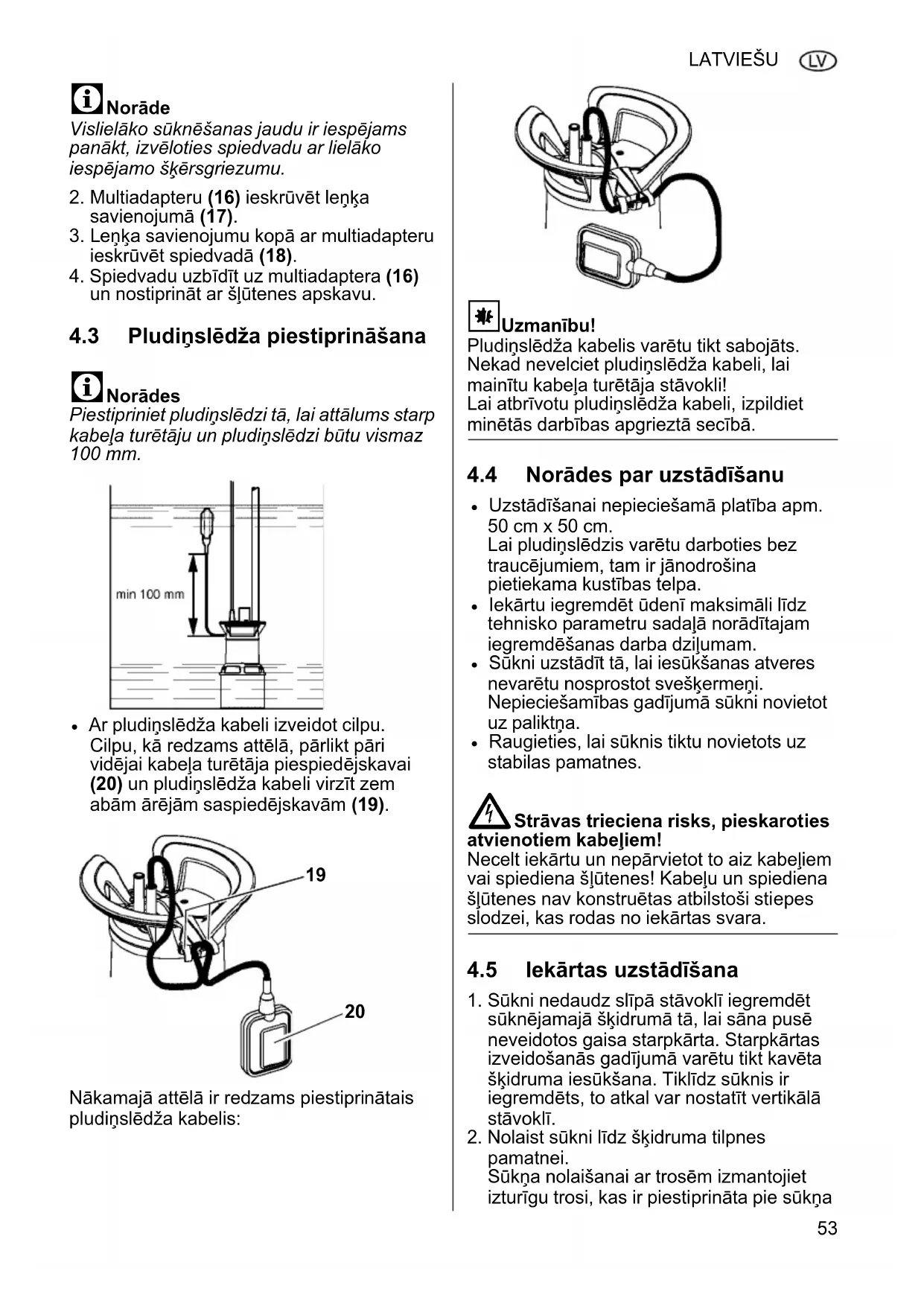 LATVIEŠU ABīstami! Pirms jebkādu darbu uzsākšanas pie iekārtas: atvienot iekārtas kontaktspraudni no elektrotīkla.