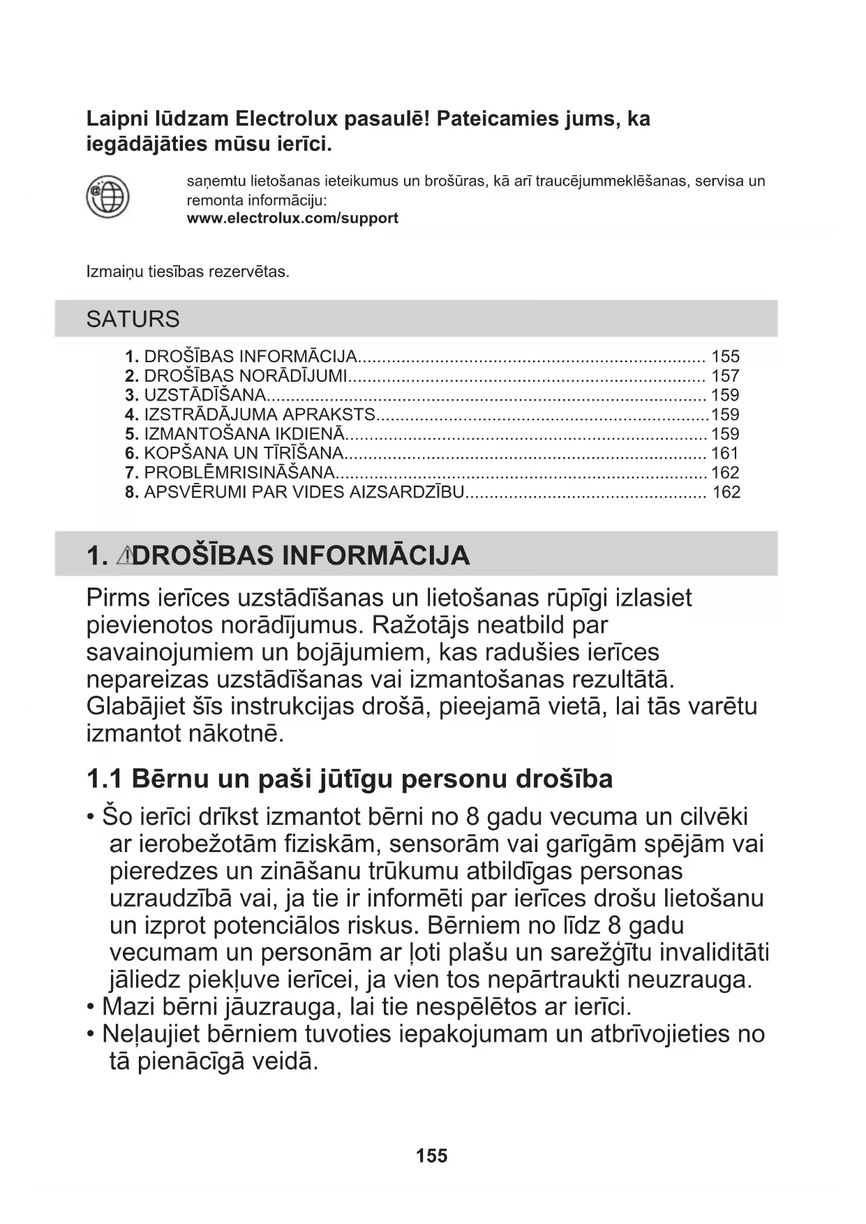 - Neļaujiet bērniem tuvoties iepakojumam un atbrīvojieties no tā pienācīgā veidā. 155• Neļaujiet bērniem un mājdzīvniekiem atrasties ierīces tuvumā, kad tā darbojas.