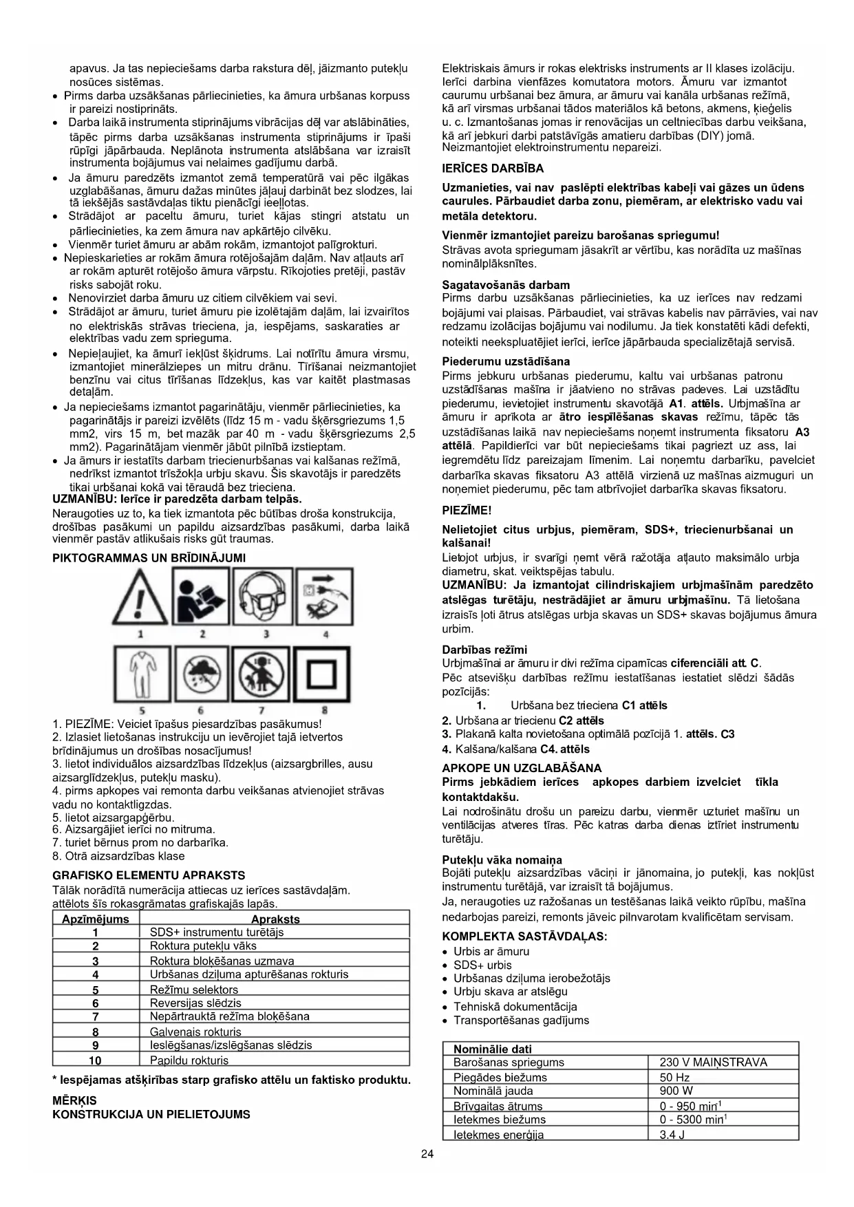 - Strādājot ar āmuru, jālieto aizsargbrilles vai aizsargbrilles, dzirdes aizsardzība un aizsargķivere (ja pastāv risks, ka kaut kas var krist no augšas). Ieteicams lietot aizsargrespiratoru un neslīdošus24 apavus. Ja tas nepieciešams darba rakstura dēļ, jāizmanto putekļu nosūces sistēmas.