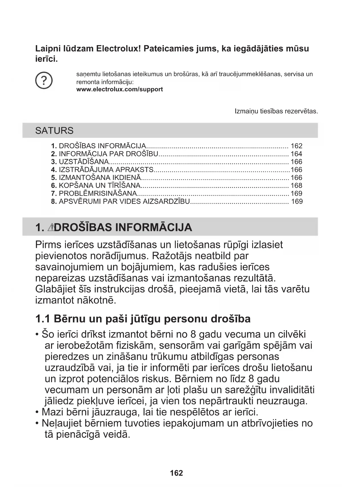 - Neļaujiet bērniem tuvoties iepakojumam un atbrīvojieties no tā pienācīgā veidā. 162• Neļaujiet bērniem un mājdzīvniekiem atrasties ierīces tuvumā, kad tā darbojas.