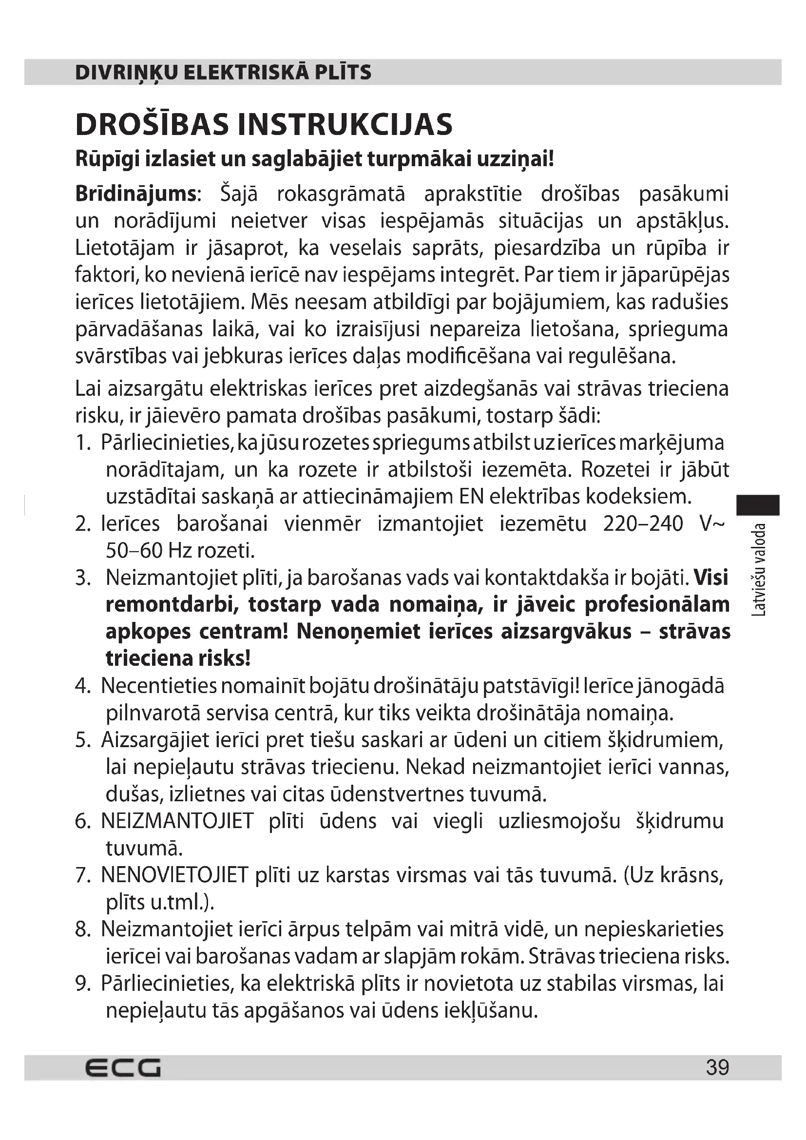EV 2510 - Plīts ECG - Bezmaksas lietošanas instrukcija