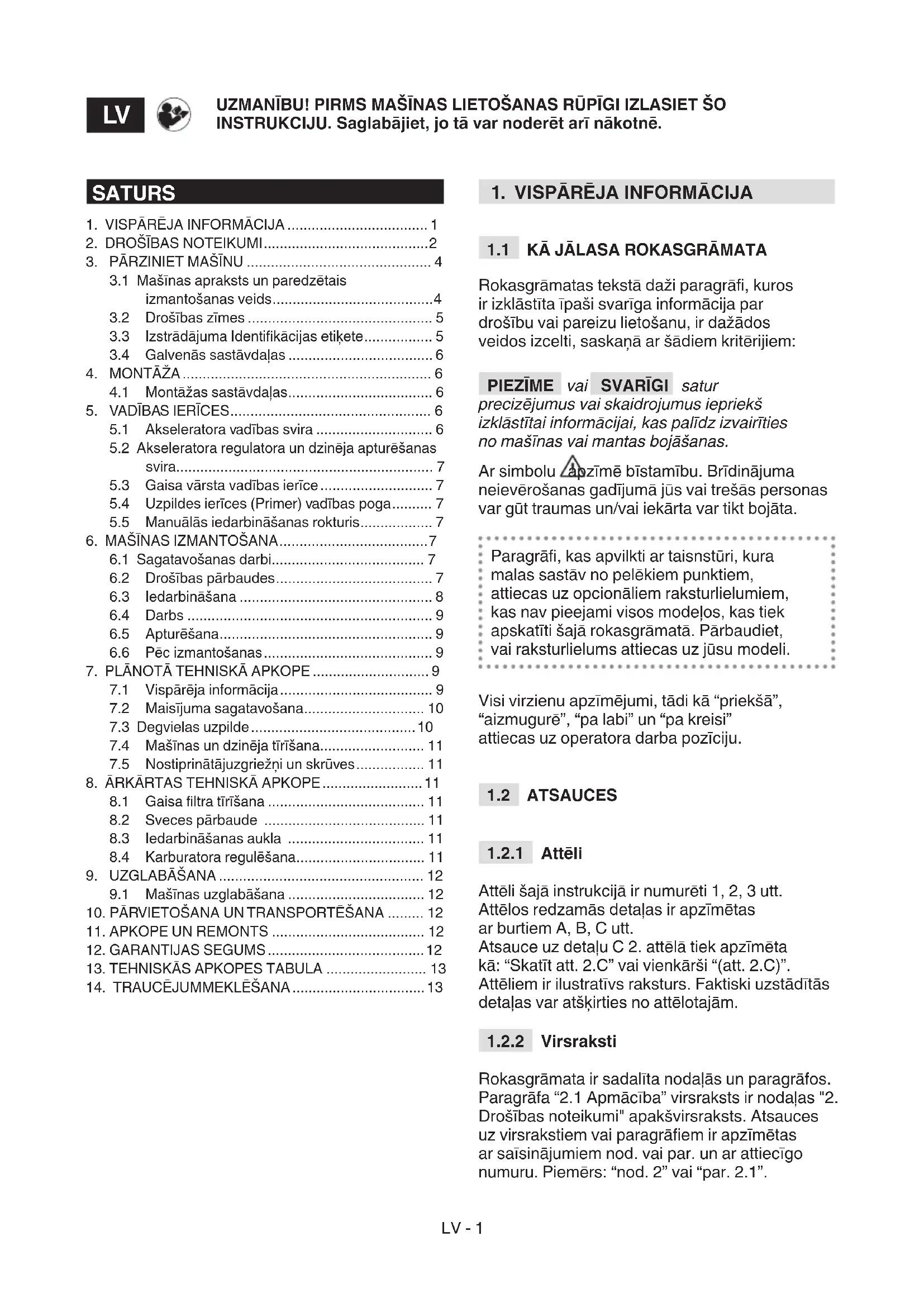 5.5 Manuālās iedarbināšanas rokturis .................. 7
