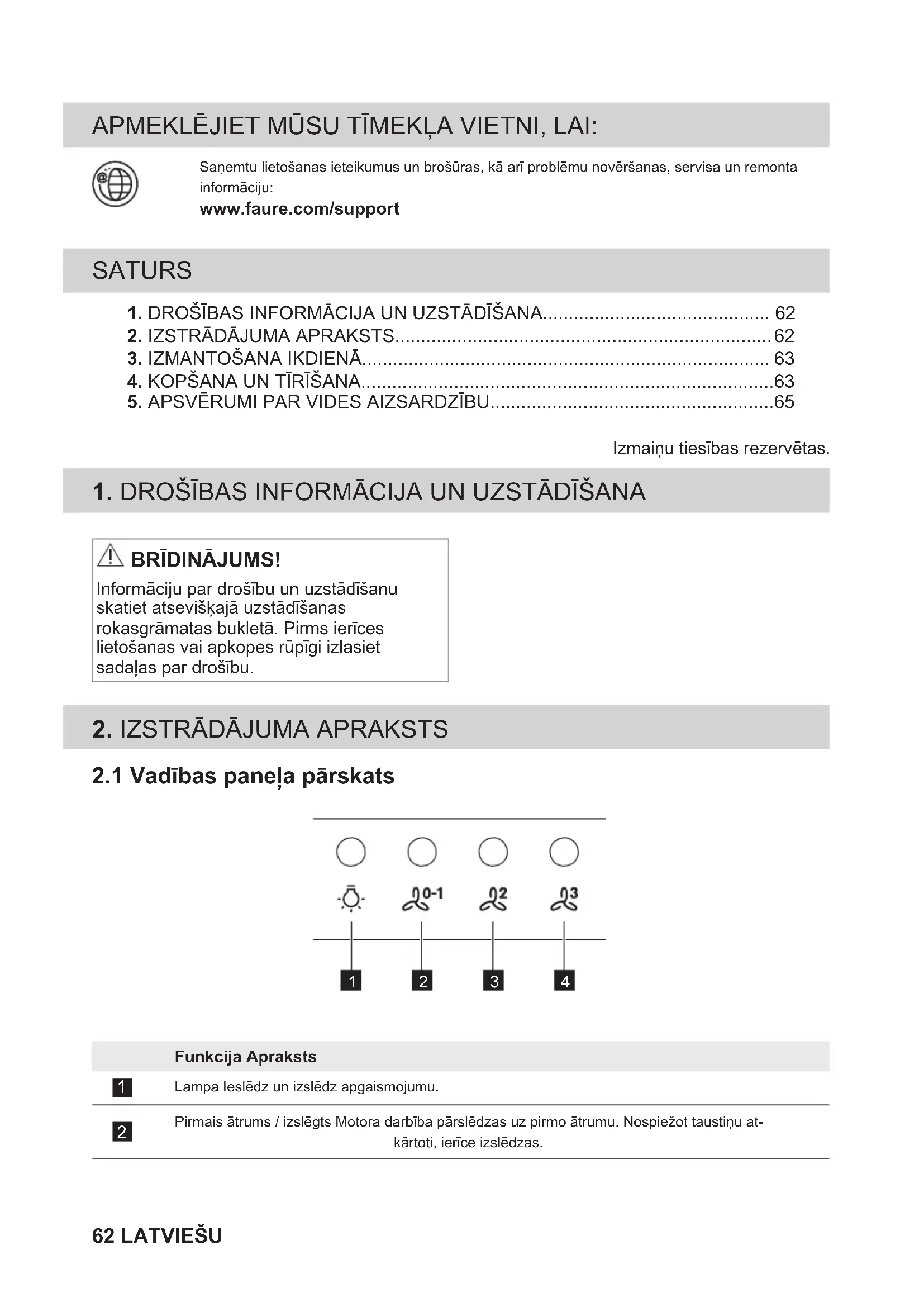 1. DROŠĪBAS INFORMĀCIJA UN UZSTĀDĪŠANA