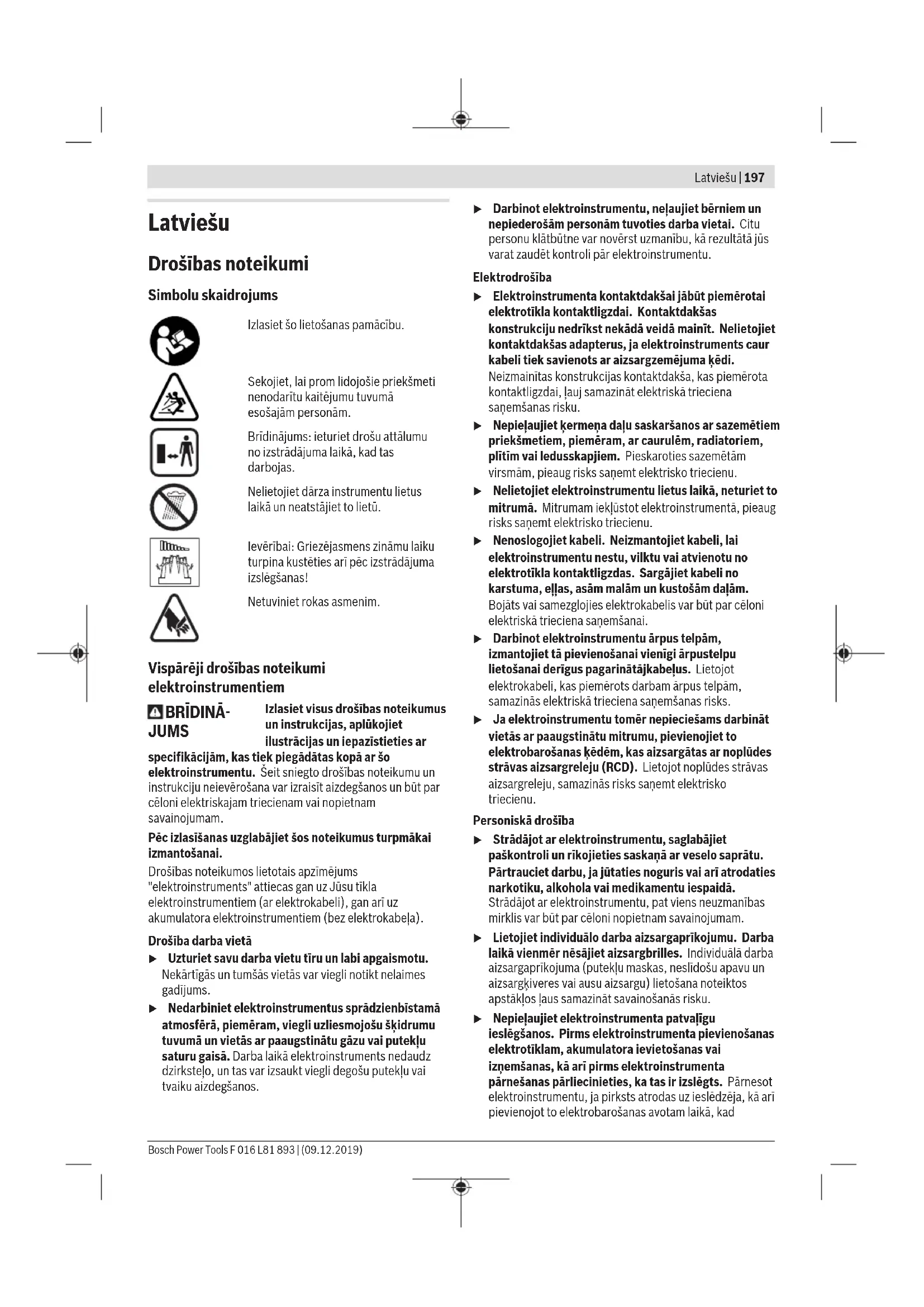 Bosch Power Tools F 016 L81 893 | (09.12.2019)202 | Latviešu Dzīvžoga šķēres Elektroinstrumenta radītā trokšņa vērtība ir noteikta atbilstoši standartam EN 62841-4-2. Elektroinstrumenta radītā pēc A raksturlīknes izsvērtā trokšņa parametru tipiskās vērtības ir šādas: trokšņa spiediena līmenis XXdB(A); trokšņa jaudas līmenis XXdB(A). Izkliede K== XXdB. Izstrādājum radīto svārstību paātrinājuma vērtība a