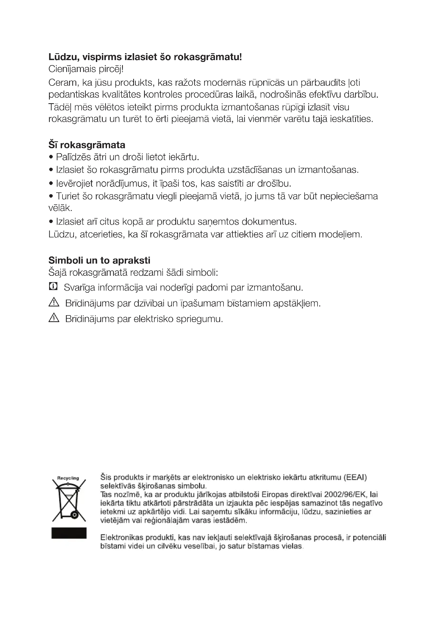 - Turiet šo rokasgrāmatu viegli pieejamā vietā, jo jums tā var būt nepieciešama vēlāk.