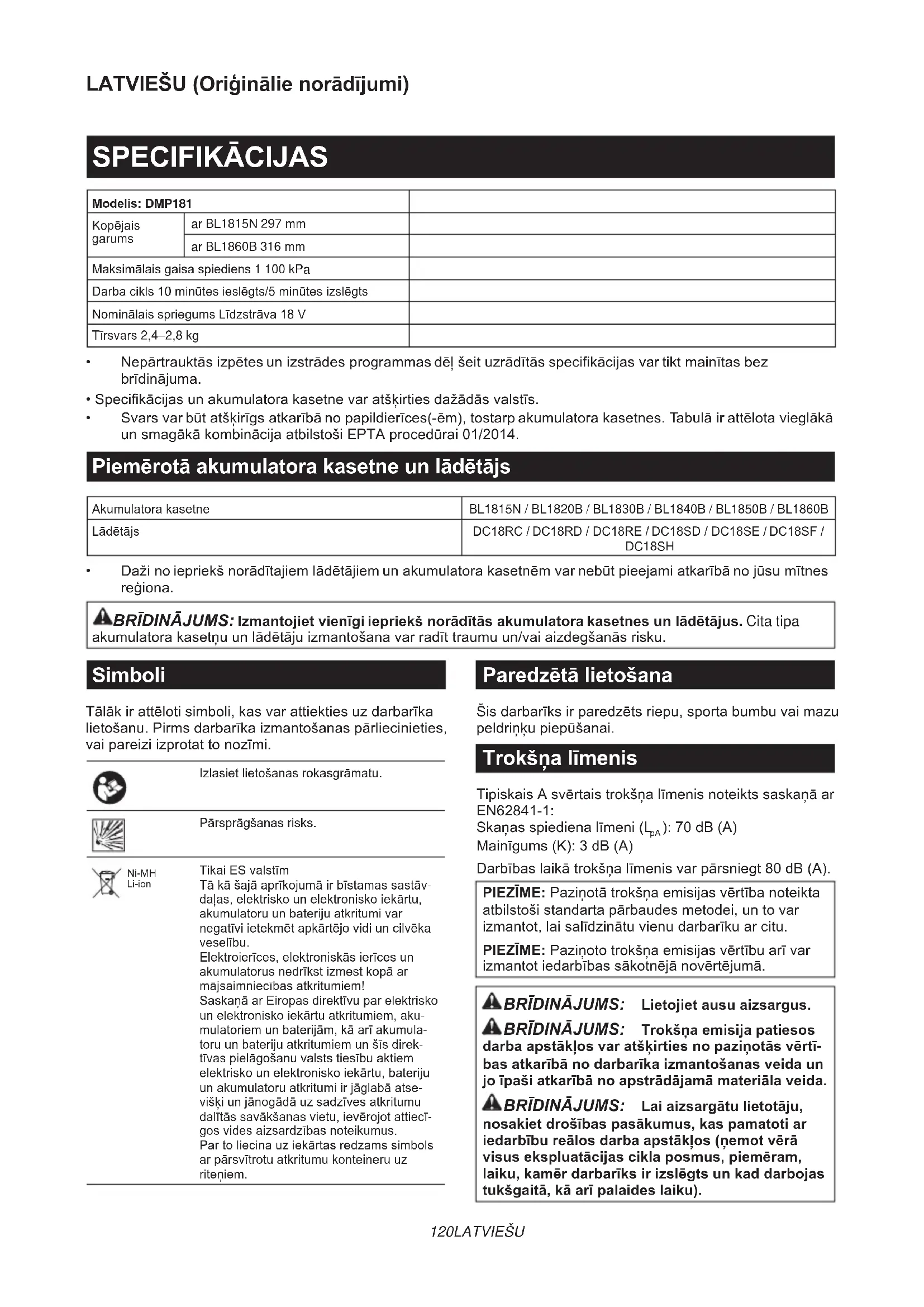 LIETOŠANAS INSTRUKCIJA DMP180Z MAKITA