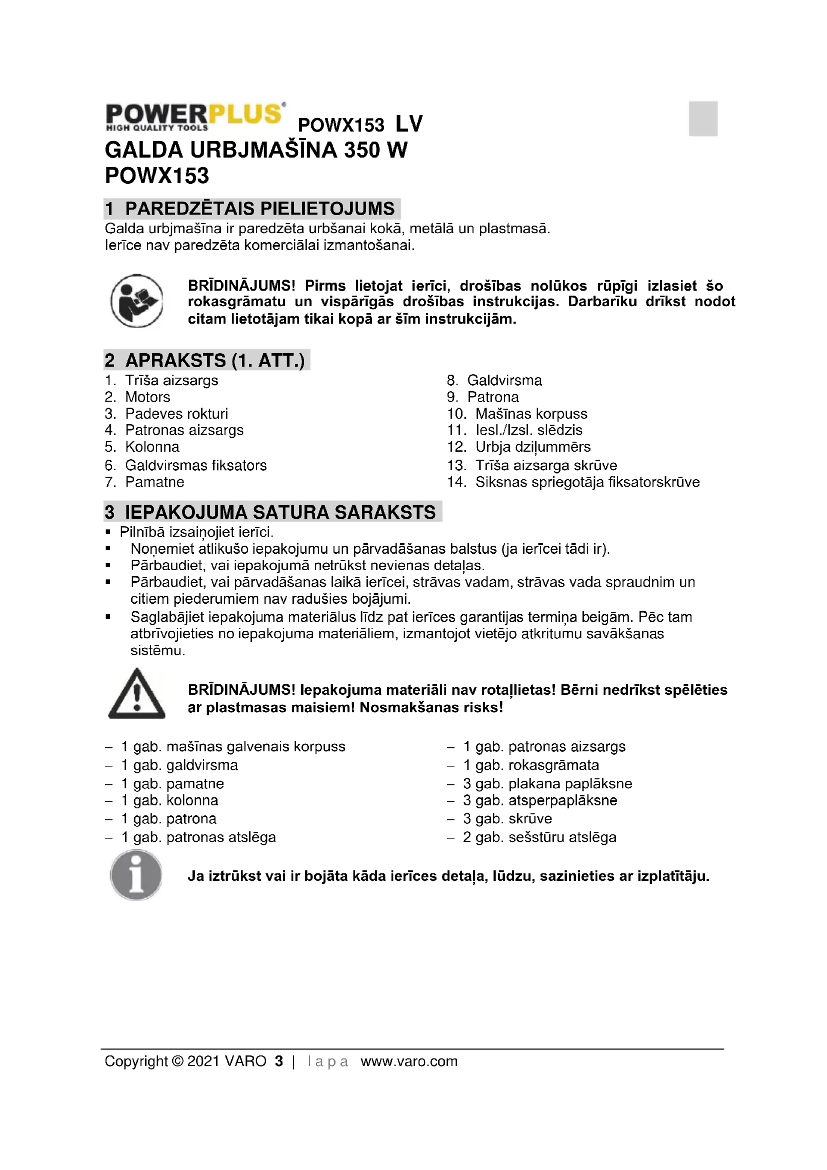 - urbja lūzums;POWX153 LV Copyright © 2021 VARO 7 | l a p a www.varo.com