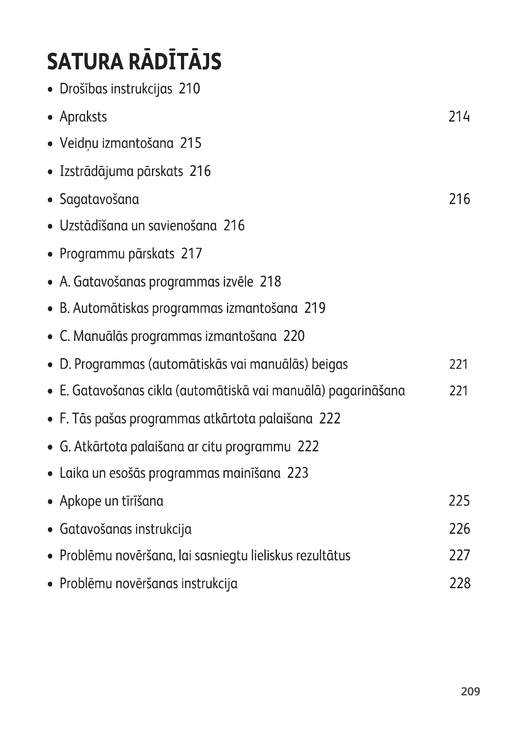 - E. Gatavošanas cikla (automātiskā vai manuālā) pagarināšana 221