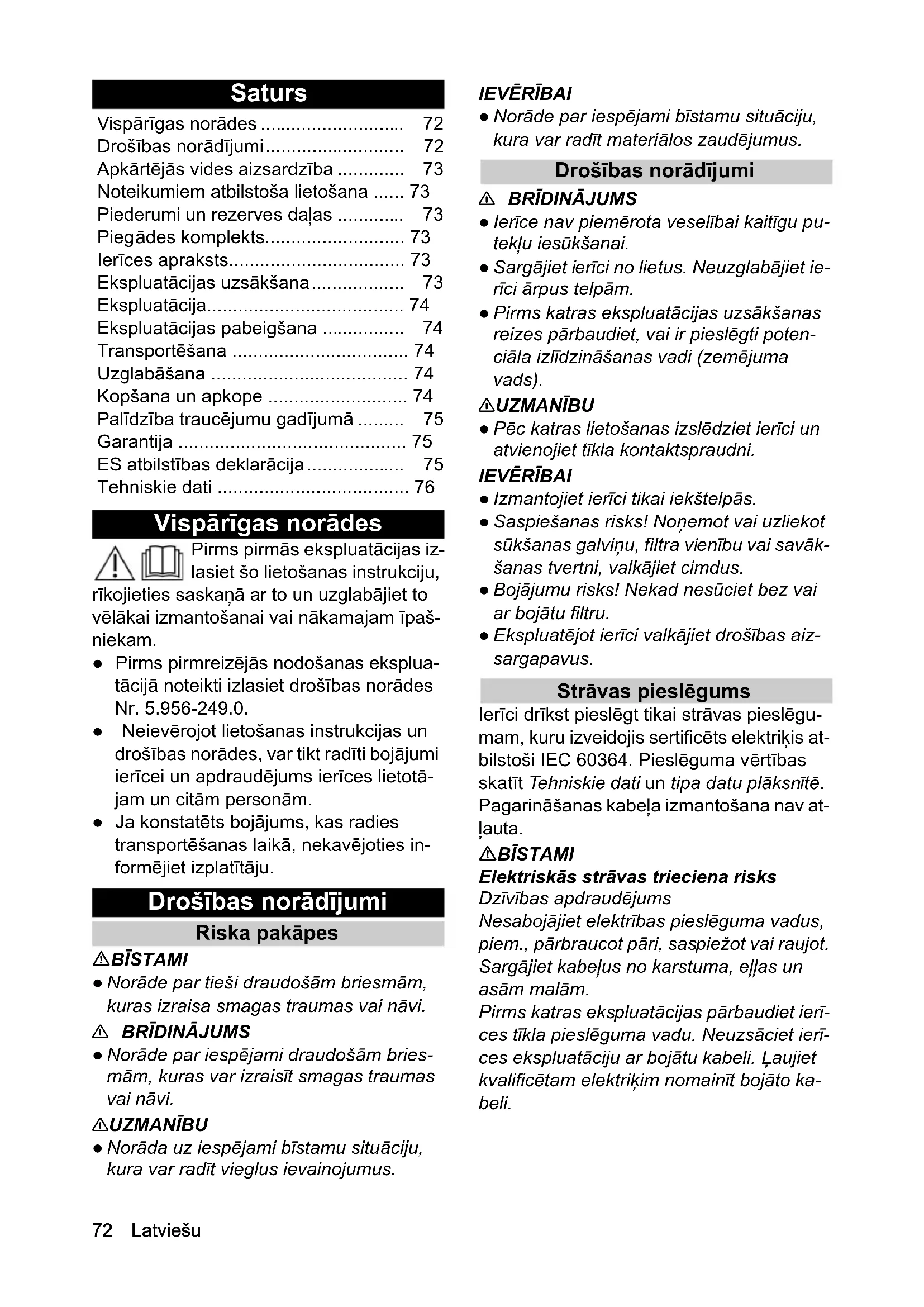 • Drošības norādījumi p. 72