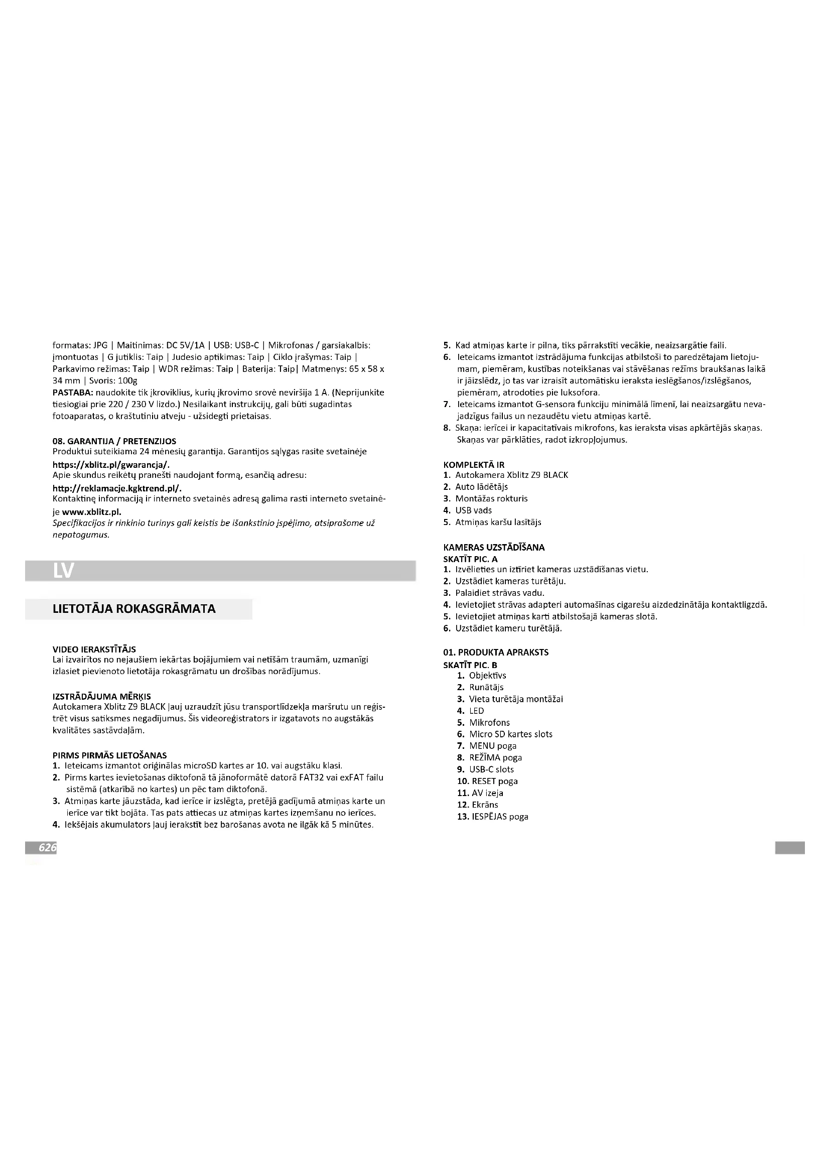 LIETOŠANAS INSTRUKCIJA Z9 Xblitz