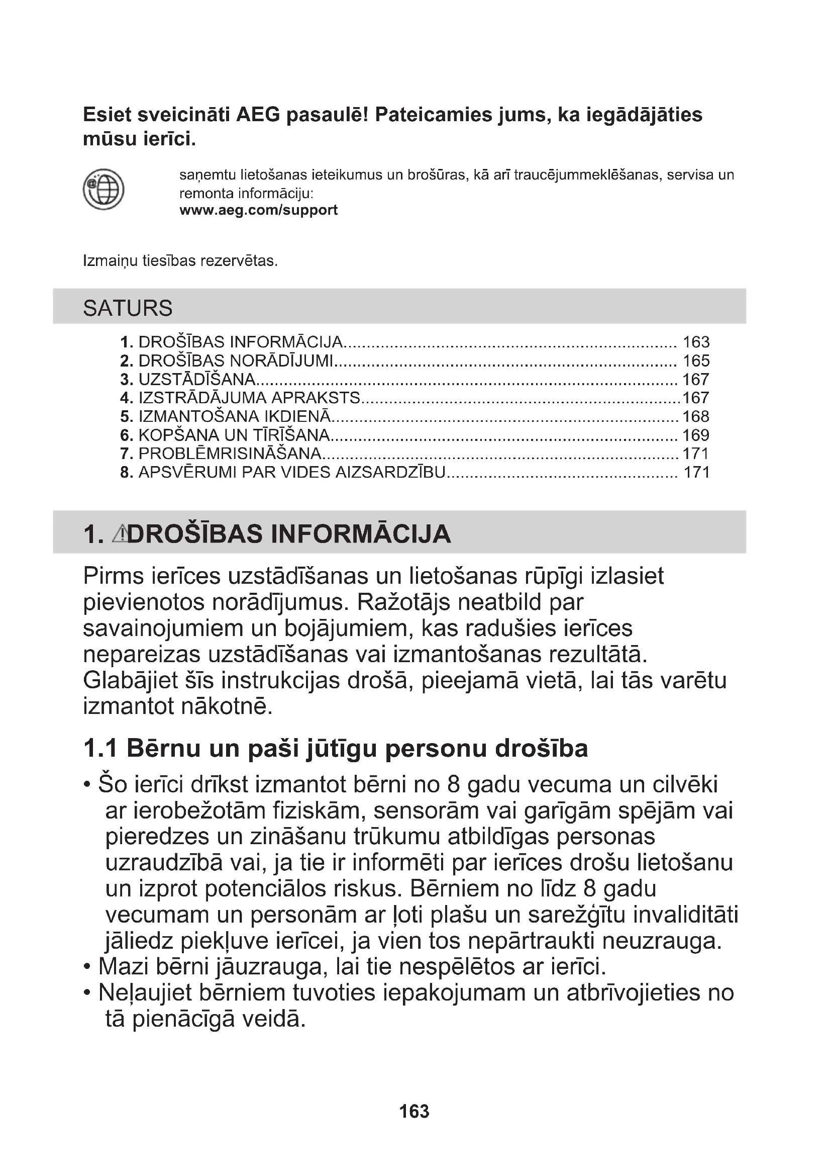- Neļaujiet bērniem tuvoties iepakojumam un atbrīvojieties no tā pienācīgā veidā. 163• Neļaujiet bērniem un mājdzīvniekiem atrasties ierīces tuvumā, kad tā darbojas.
