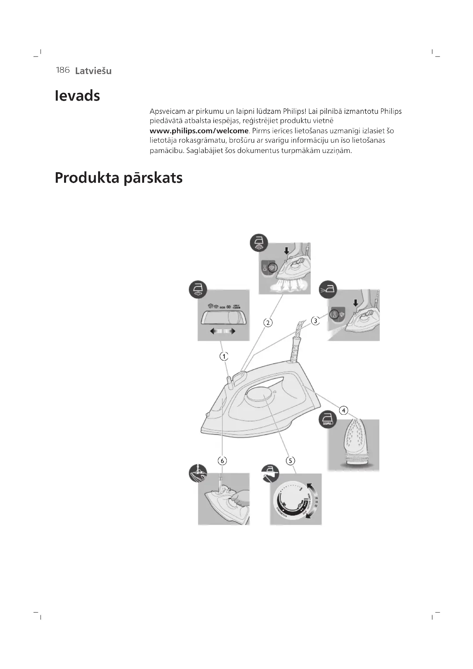 Latviešu Ievads Apsveicam ar pirkumu un laipni lūdzam Philips! Lai pilnībā izmantotu Philips piedāvātā atbalsta iespējas, reģistrējiet produktu vietnē www.philips.com/welcome. Pirms ierīces lietošanas uzmanīgi izlasiet šo lietotāja rokasgrāmatu, brošūru ar svarīgu informāciju un īso lietošanas pamācību. Saglabājiet šos dokumentus turpmākām uzziņām. Produkta pārskats
