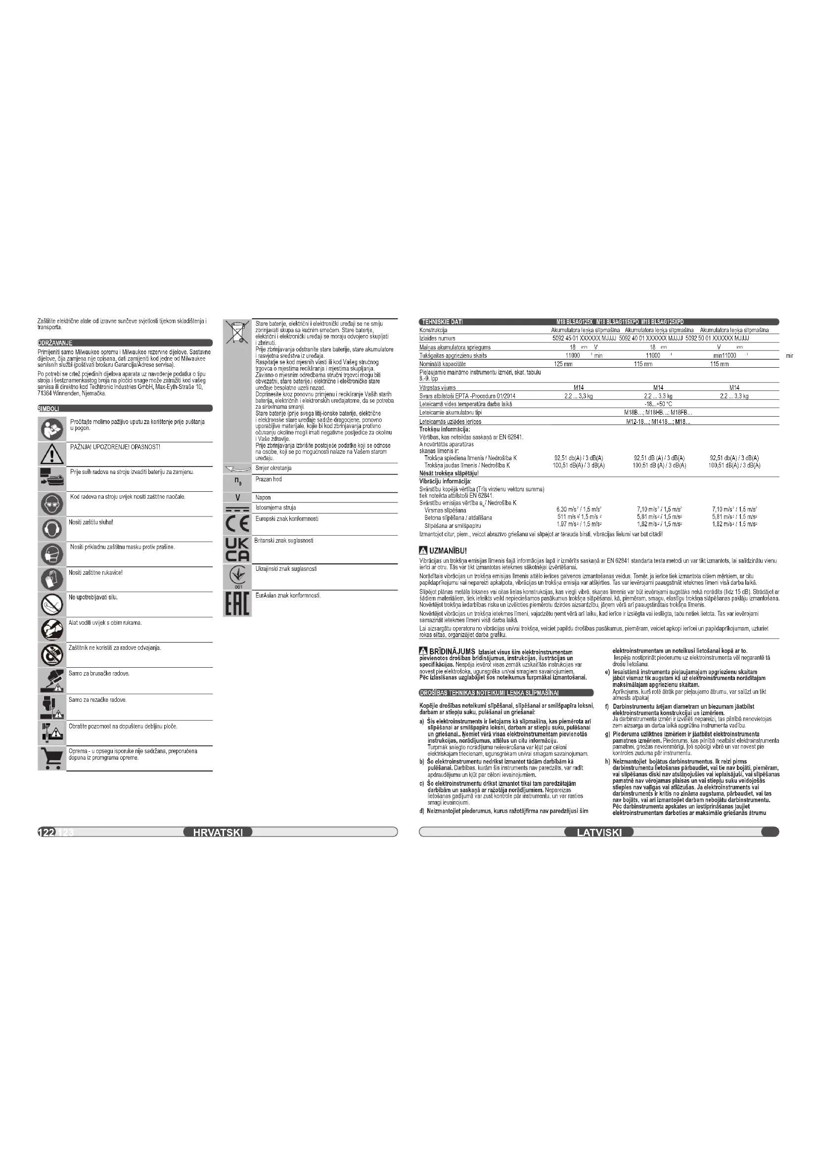 LIETOŠANAS INSTRUKCIJA M18 BLSAG125XPD MILWAUKEE