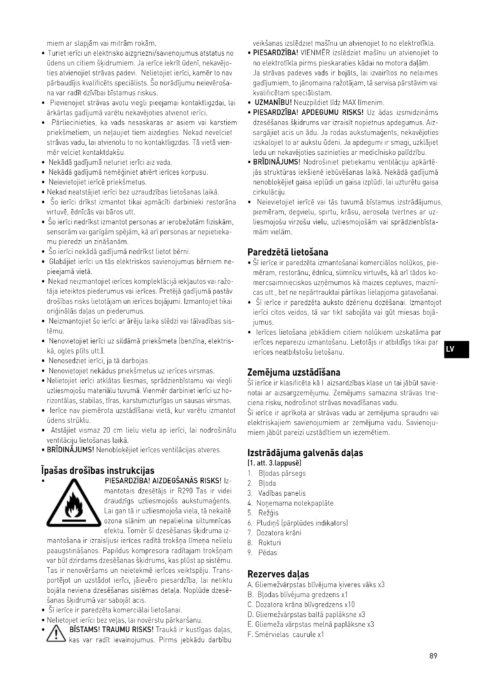 - Ja ierīce netiek uzturēta labā tīrības līmenī, tas var nelabvēlīgi ietekmēt ierīces darbmūžu un izraisīt bīstamu situāciju.