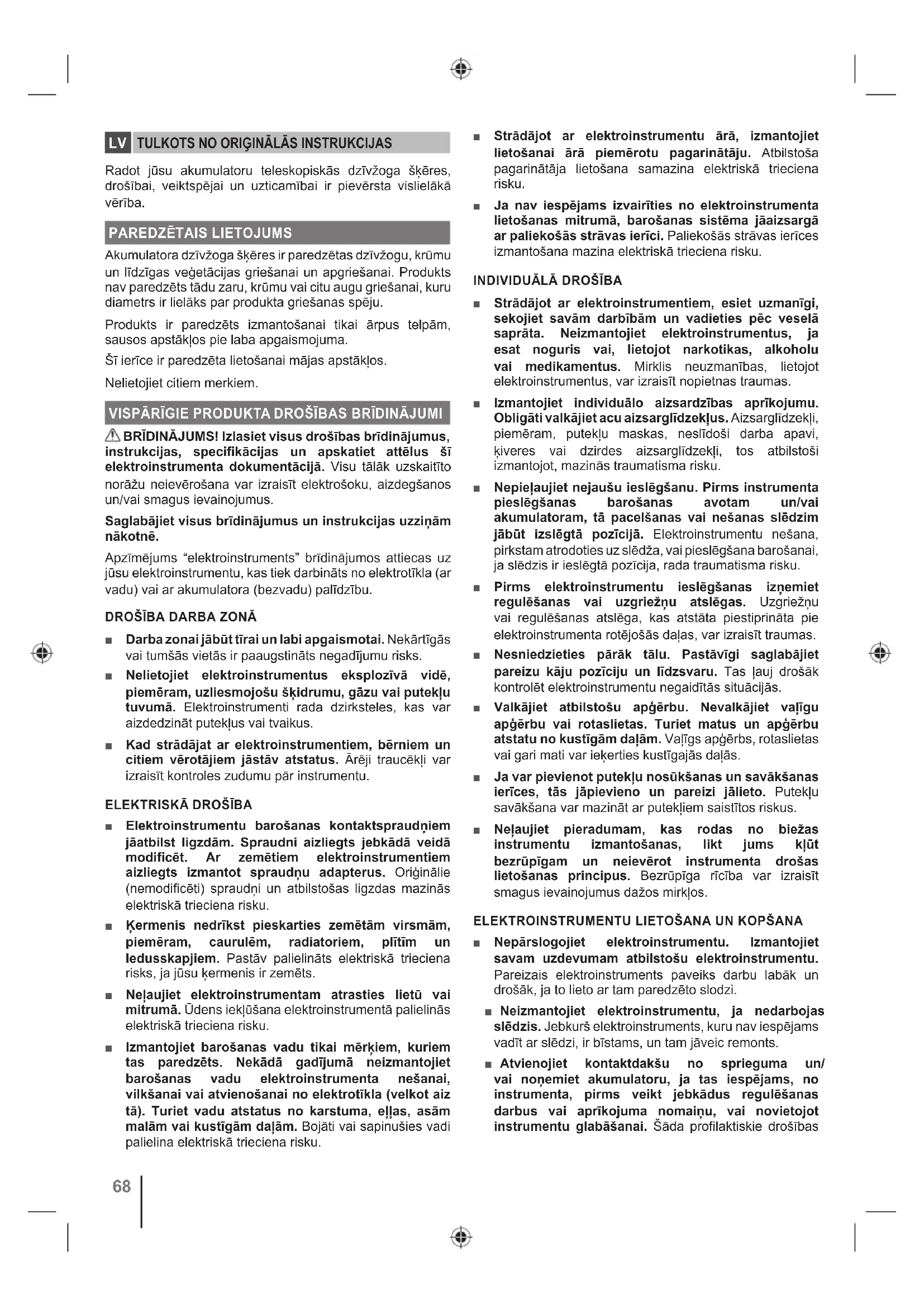 TULKOTS NO ORIĢINĀLĀS INSTRUKCIJAS Radot jūsu akumulatoru teleskopiskās dzīvžoga šķēres, drošībai, veiktspējai un uzticamībai ir pievērsta vislielākā vērība.