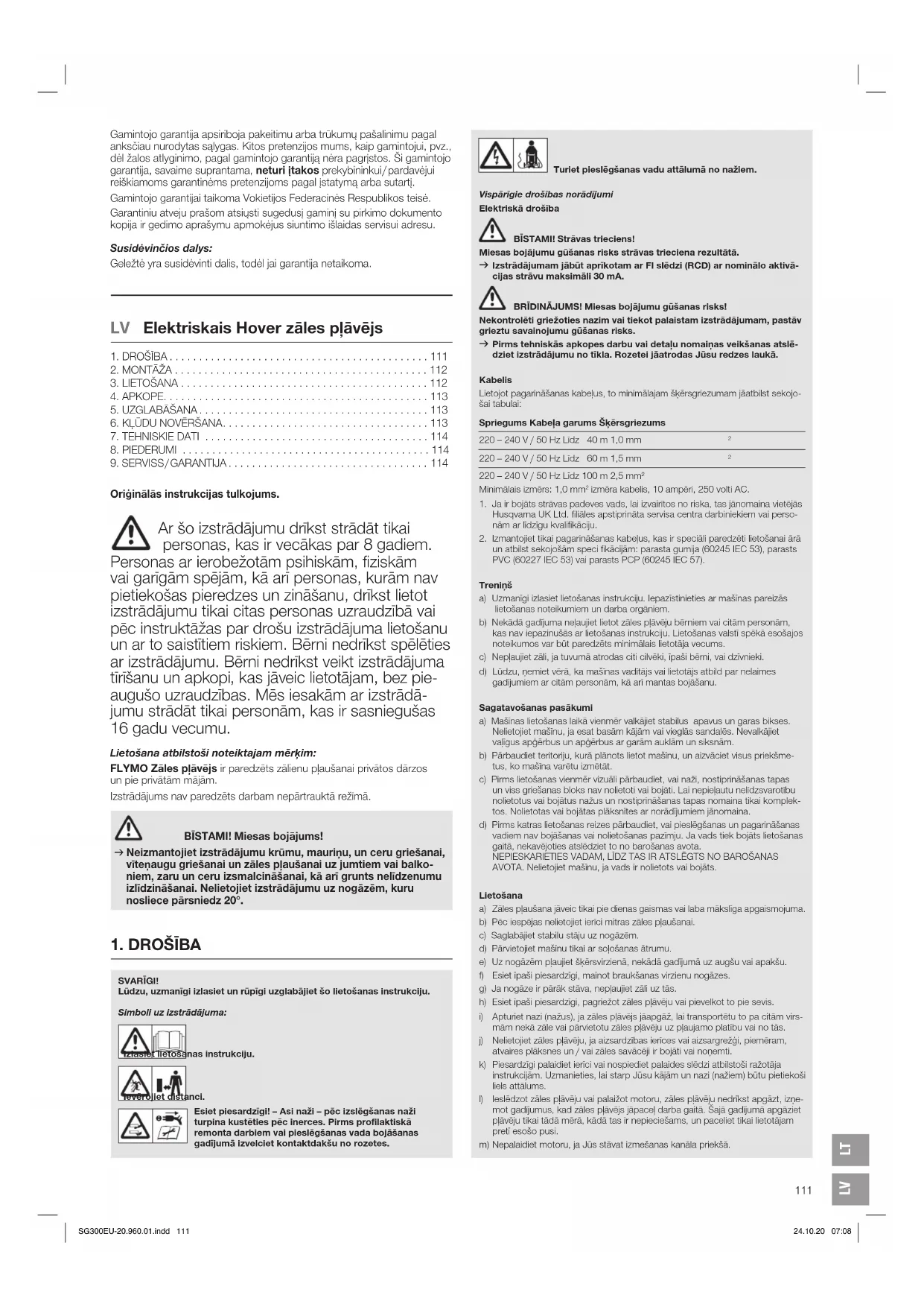 BĪSTAMI! Miesas bojājums! Ja izstrādājums sāk darboties nekontrolēti, pastāv grieztu brūču gūšanas risks. SG300EU-20.960.01.indd 113 24.10.20 07:08LV