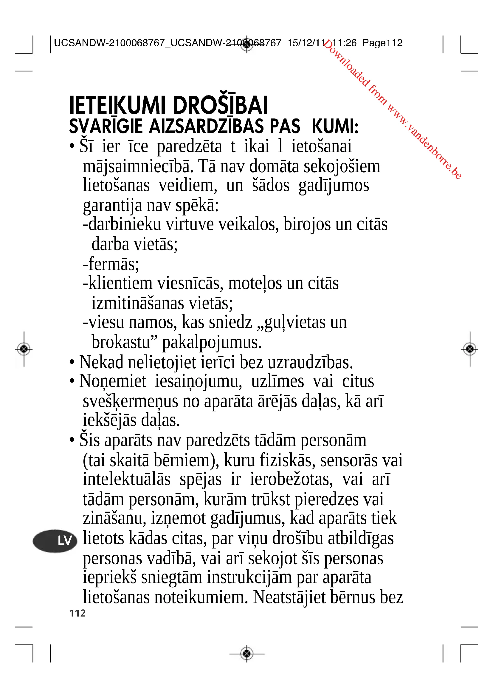 UCSANDW-2100068767_UCSANDW-2100068767 15/12/11 11:26 Page112 Downloaded from www.vandenborre.be113 uzraudzības, lai pārliecinātos, ka viņi nespēlējas ar šo aparātu.
