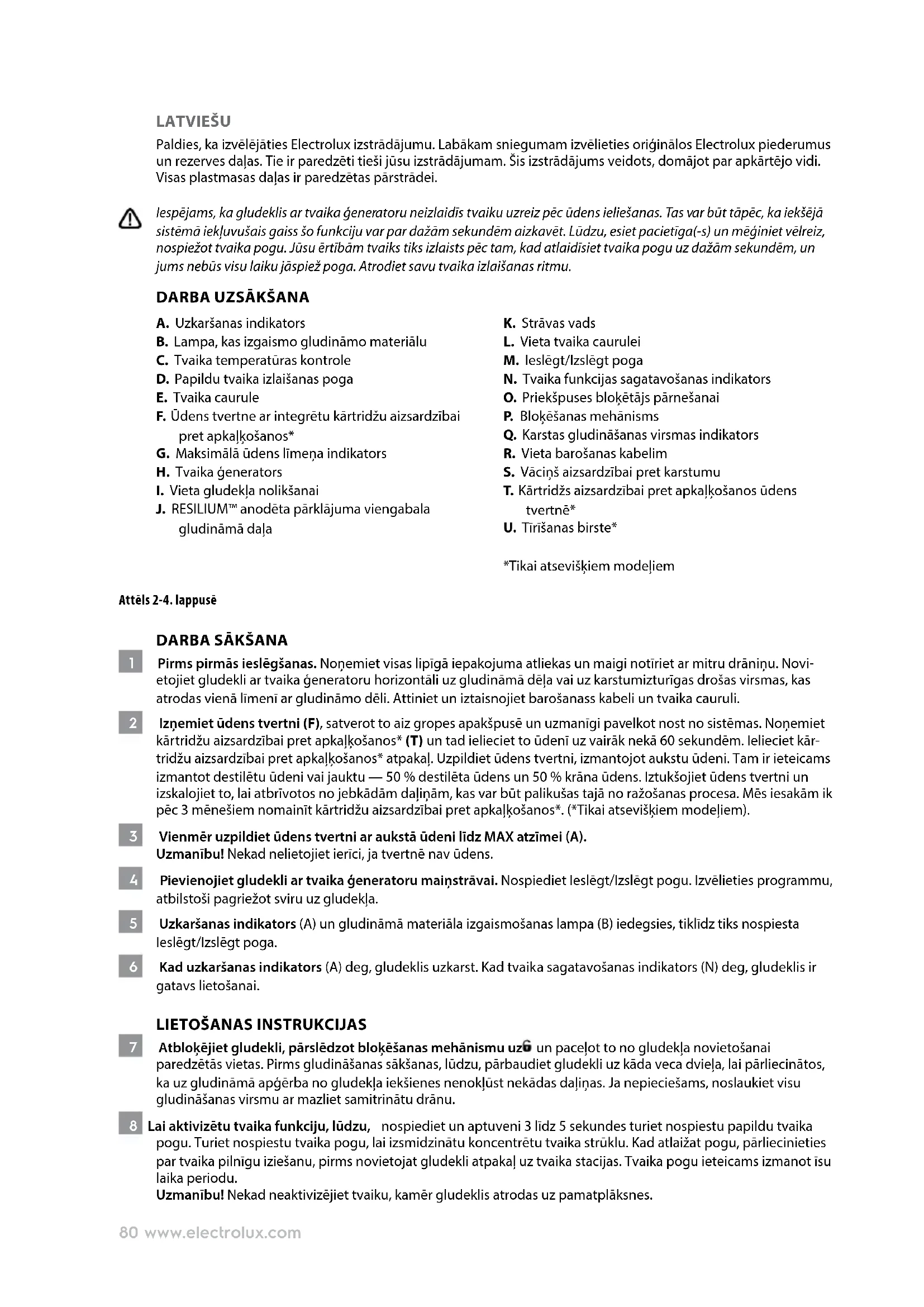- Ierīci drīkst pievienot tikai tādam strāvas padeves avotam, kura spriegums un82 www.electrolux.com frekvence atbilst norādēm uz tehnisko datu plāksnītes!