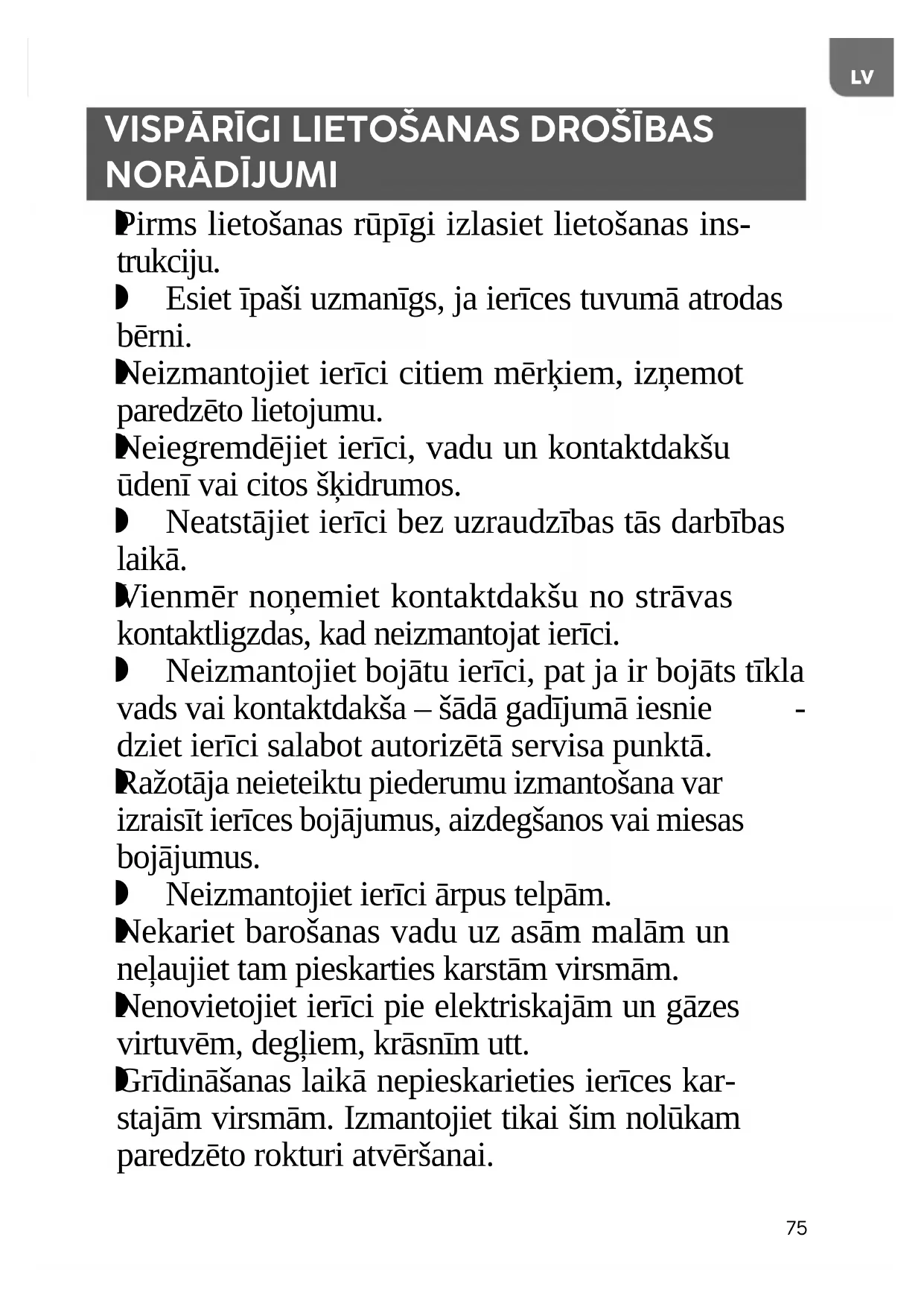 Pirms lietošanas rūpīgi izlasiet lietošanas ins- trukciju. Esiet īpaši uzmanīgs, ja ierīces tuvumā atrodas bērni.