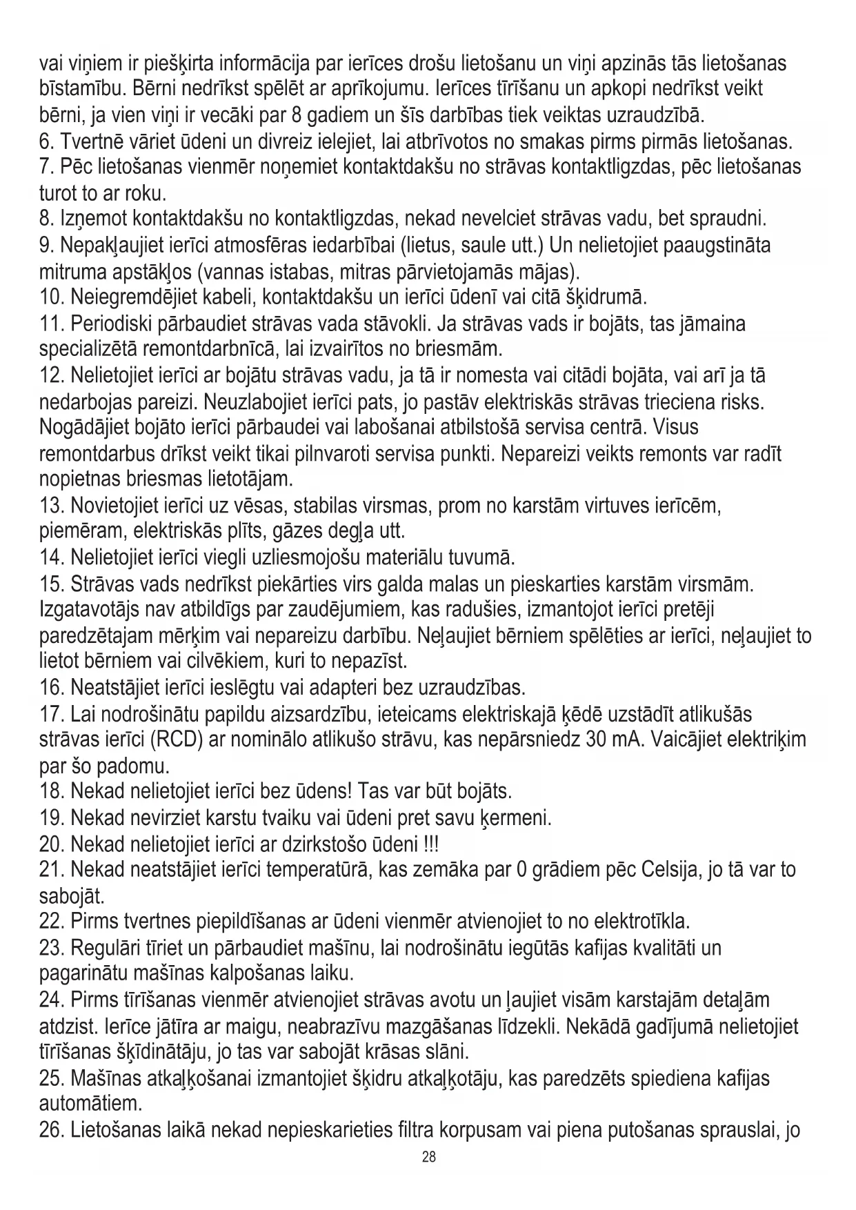 26. Lietošanas laikā nekad nepieskarieties filtra korpusam vai piena putošanas sprauslai, jo29