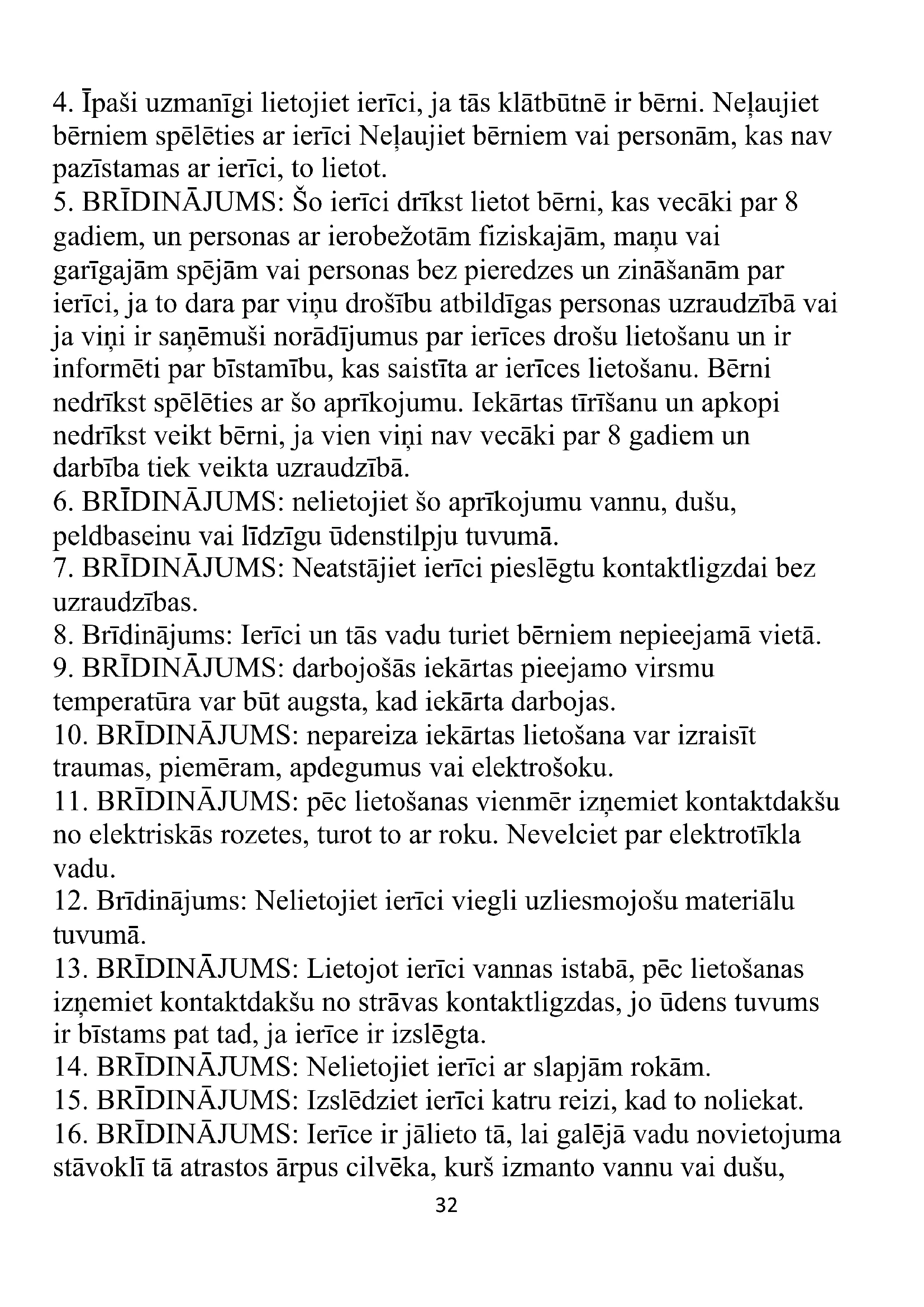 4. Īpaši uzmanīgi lietojiet ierīci, ja tās klātbūtnē ir bērni. Neļaujiet