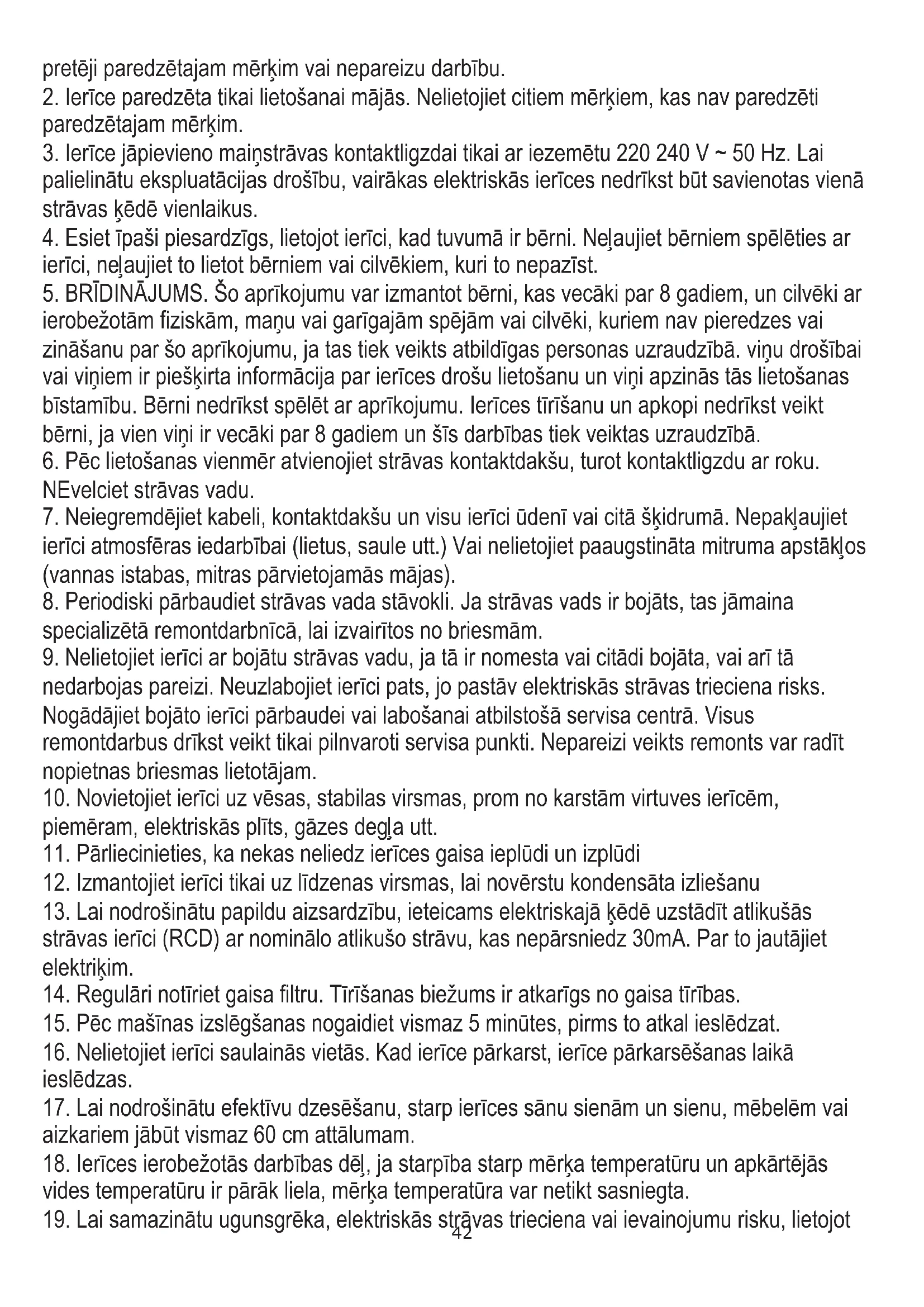 2. Ierīce paredzēta tikai lietošanai mājās. Nelietojiet citiem mērķiem, kas nav paredzēti