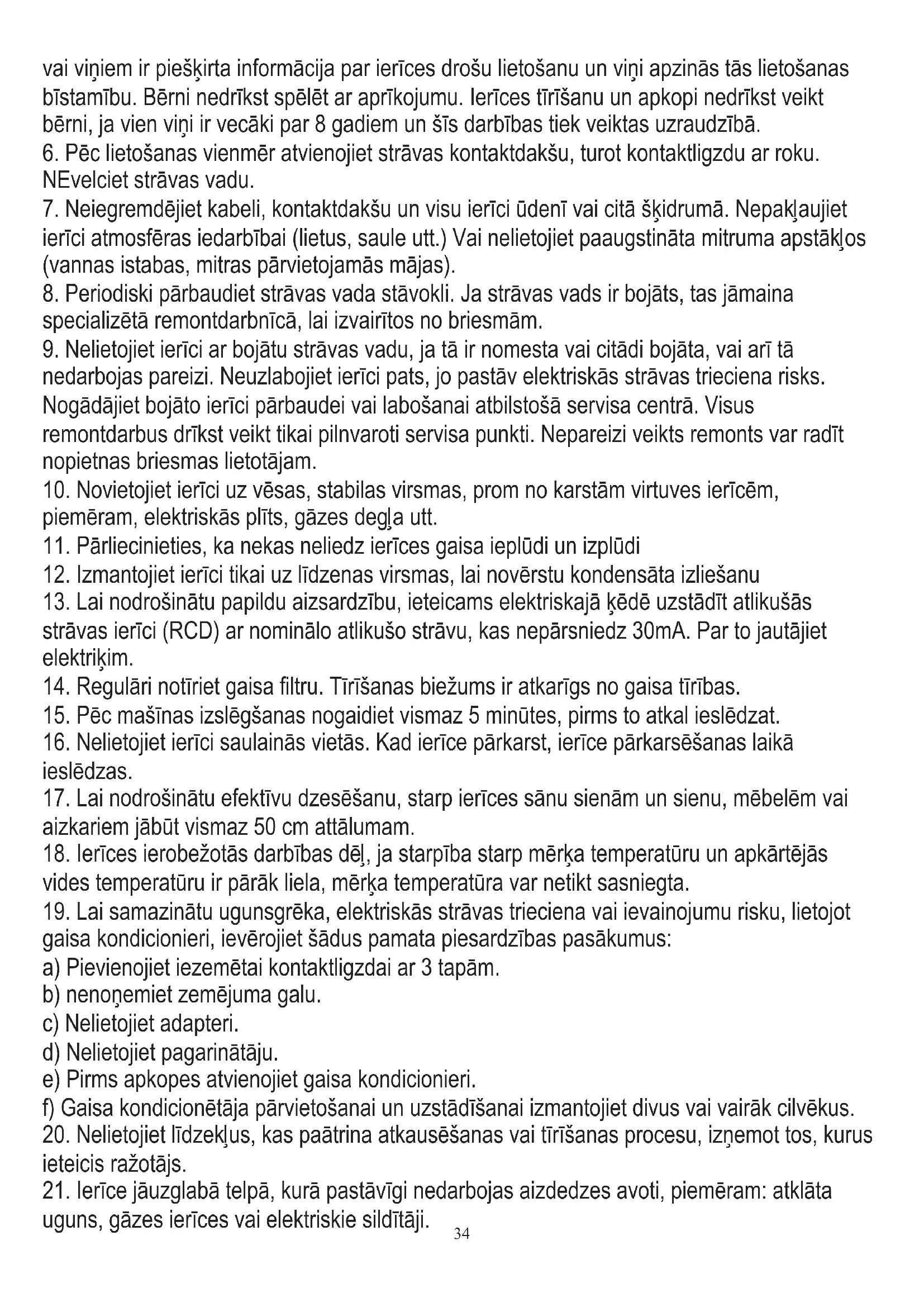 a) Pievienojiet iezemētai kontaktligzdai ar 3 tapām. vai viņiem ir piešķirta informācija par ierīces drošu lietošanu un viņi apzinās tās lietošanas bīstamību. Bērni nedrīkst spēlēt ar aprīkojumu. Ierīces tīrīšanu un apkopi nedrīkst veikt bērni, ja vien viņi ir vecāki par 8 gadiem un šīs darbības tiek veiktas uzraudzībā.