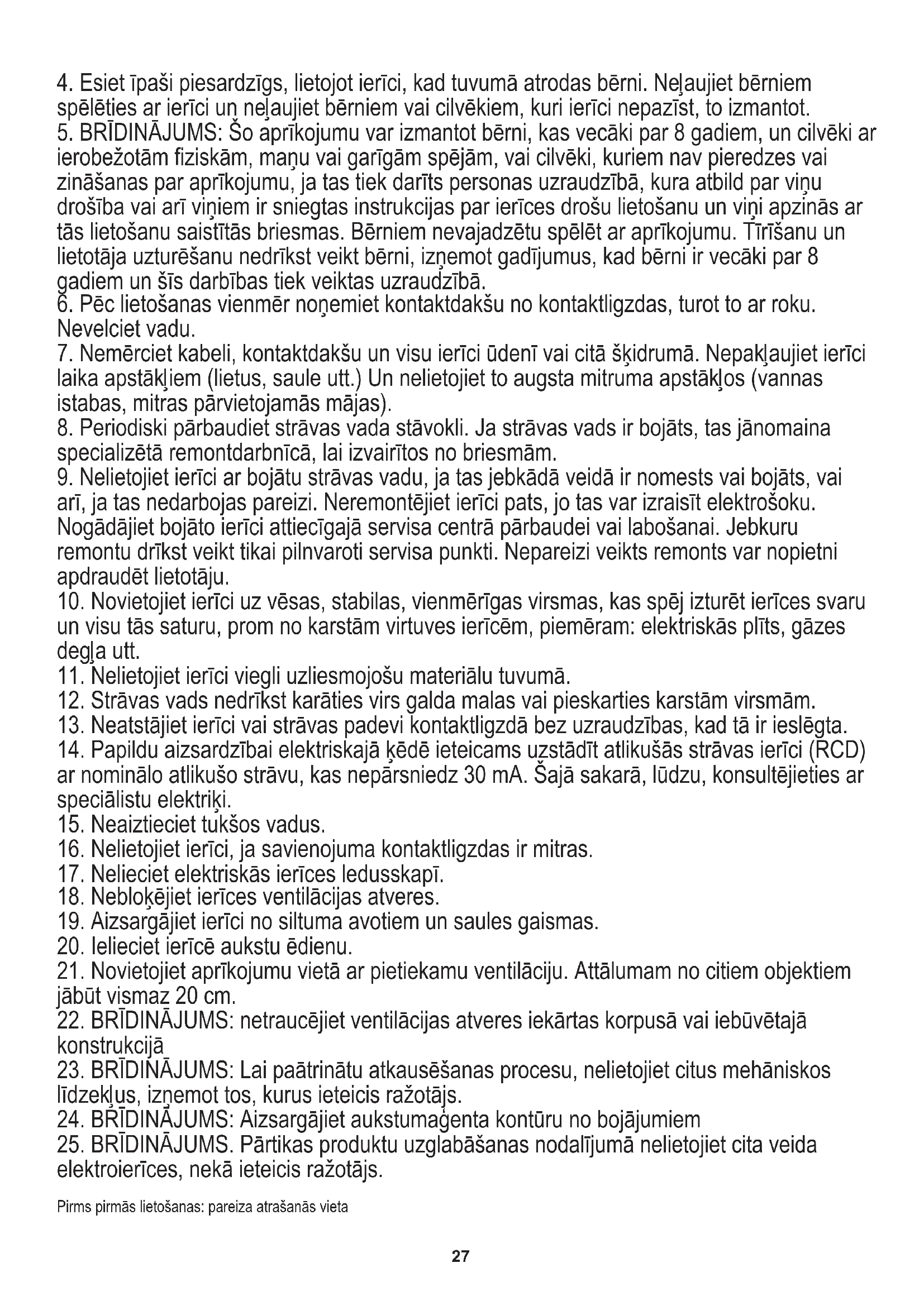 1. Pirms ierīces lietošanas izlasiet lietošanas instrukciju un izpildiet tajā ietvertās