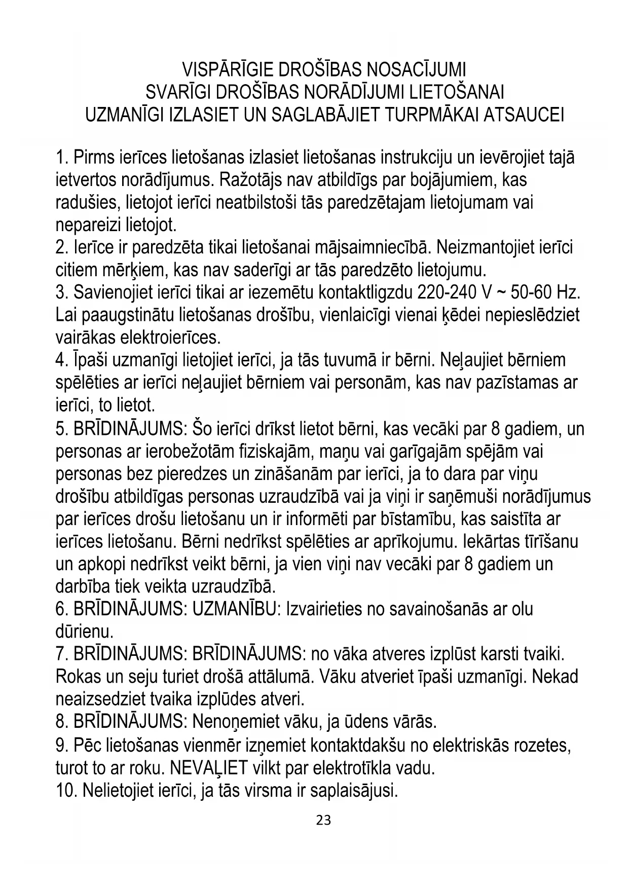 1. Pirms ierīces lietošanas izlasiet lietošanas instrukciju un ievērojiet tajā