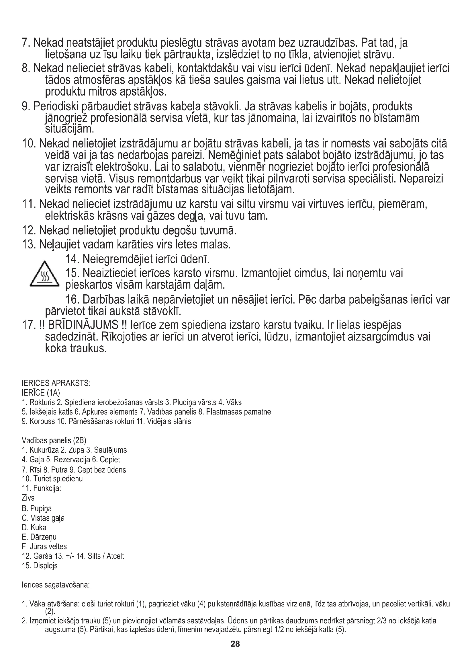 17. !! BRĪDINĀJUMS !! Ierīce zem spiediena izstaro karstu tvaiku. Ir lielas iespējas
