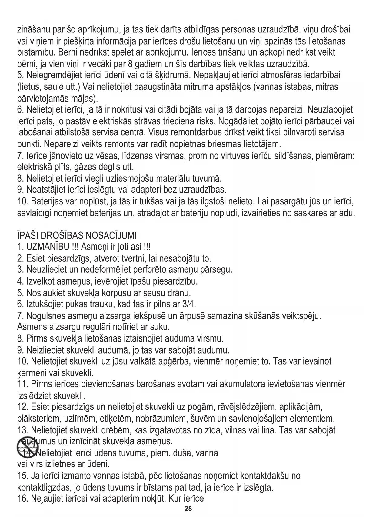 ierīci, neļaujiet to lietot bērniem vai cilvēkiem, kuri to nepazīst. VISPĀRĪGIE DROŠĪBAS NOSACĪJUMI