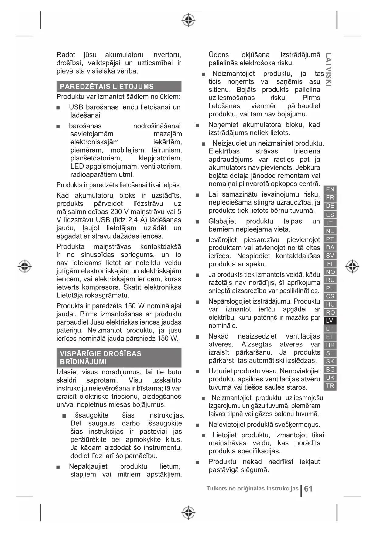 Tulkots no oriģinālās instrukcijas