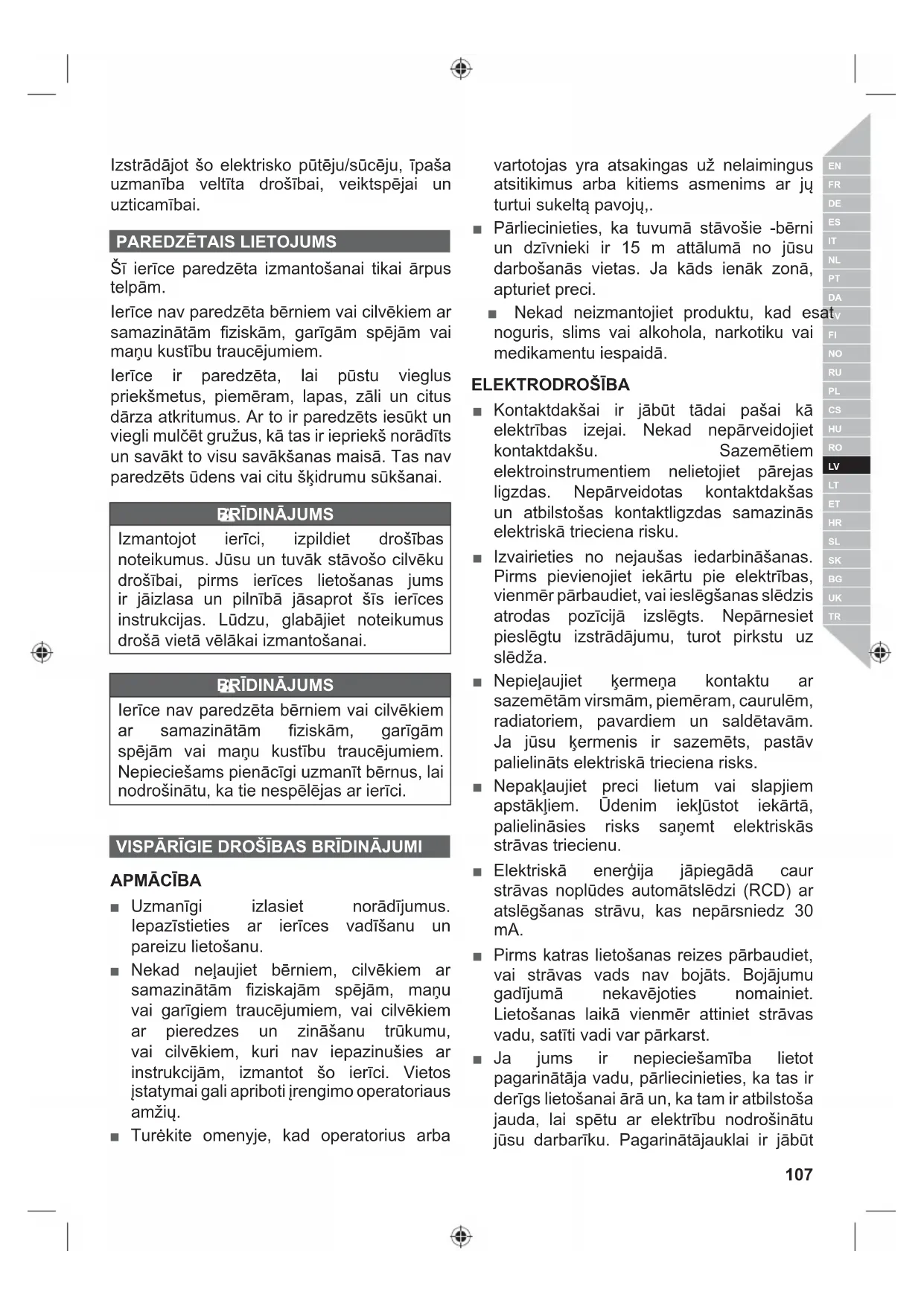 Ierīce nav paredzēta bērniem vai cilvēkiem ar samazinātām fi ziskām, garīgām spējām vai maņu kustību traucējumiem. Nepieciešams pienācīgi uzmanīt bērnus, lai nodrošinātu, ka tie nespēlējas ar ierīci. VISPĀRĪGIE DROŠĪBAS BRĪDINĀJUMI