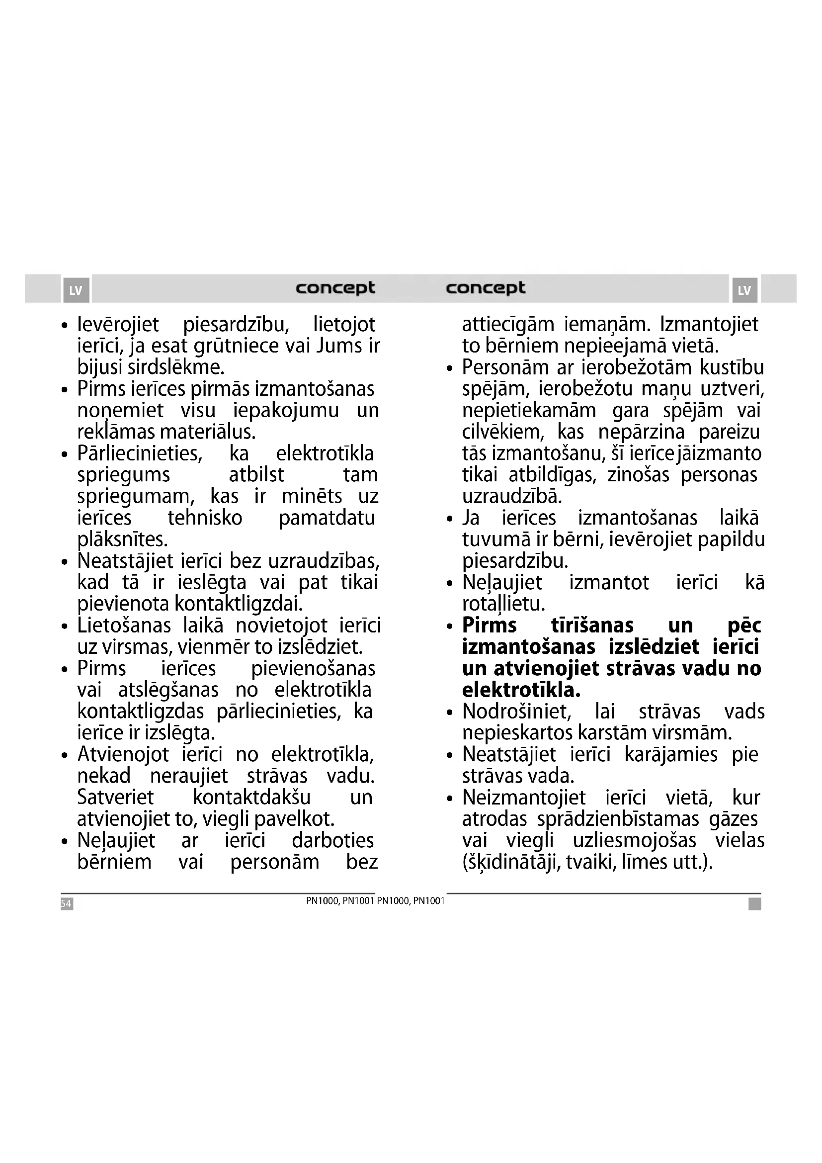 LIETOŠANAS INSTRUKCIJA PN1000 Concept