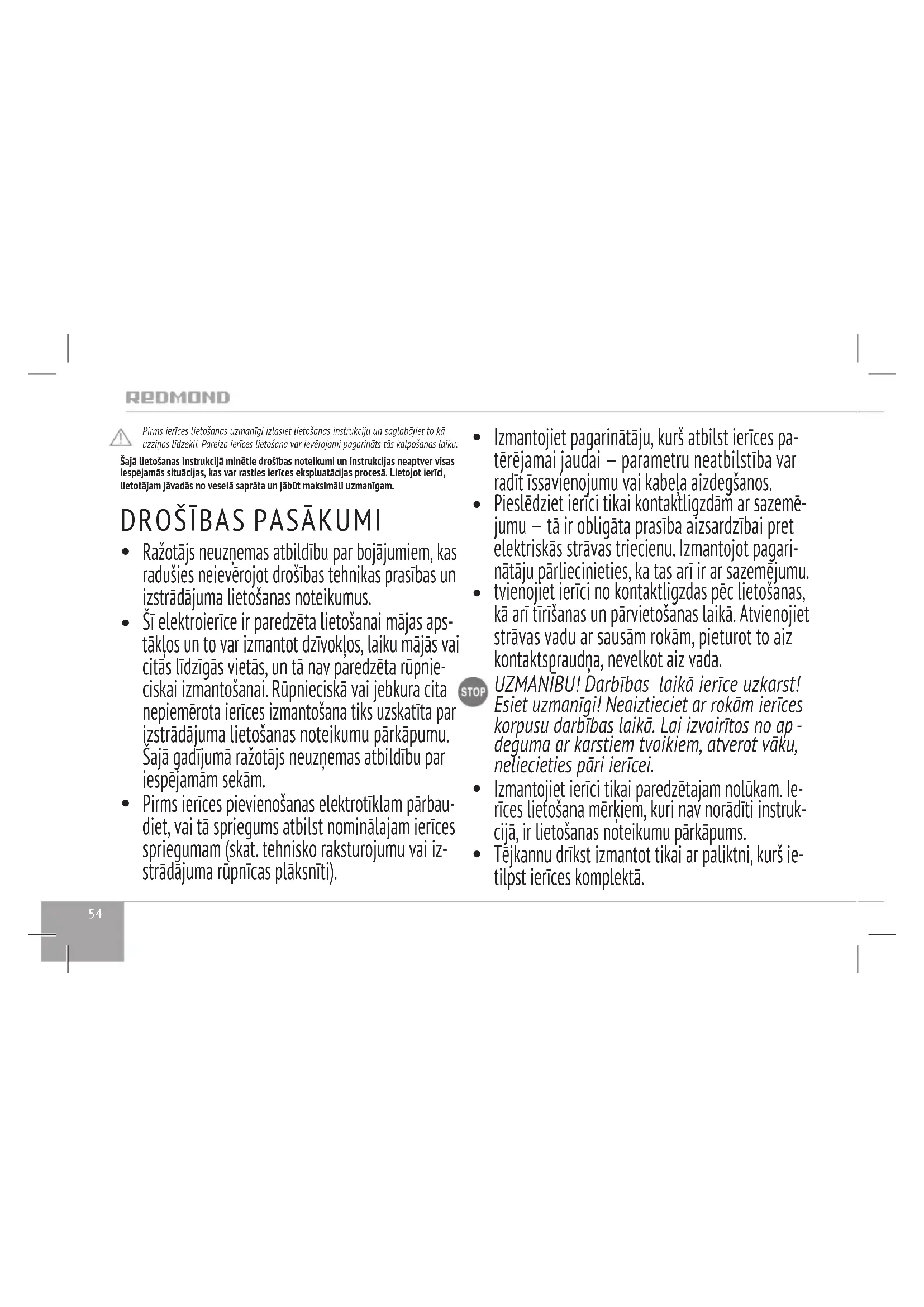 LIETOŠANAS INSTRUKCIJA RKM1721E Redmond