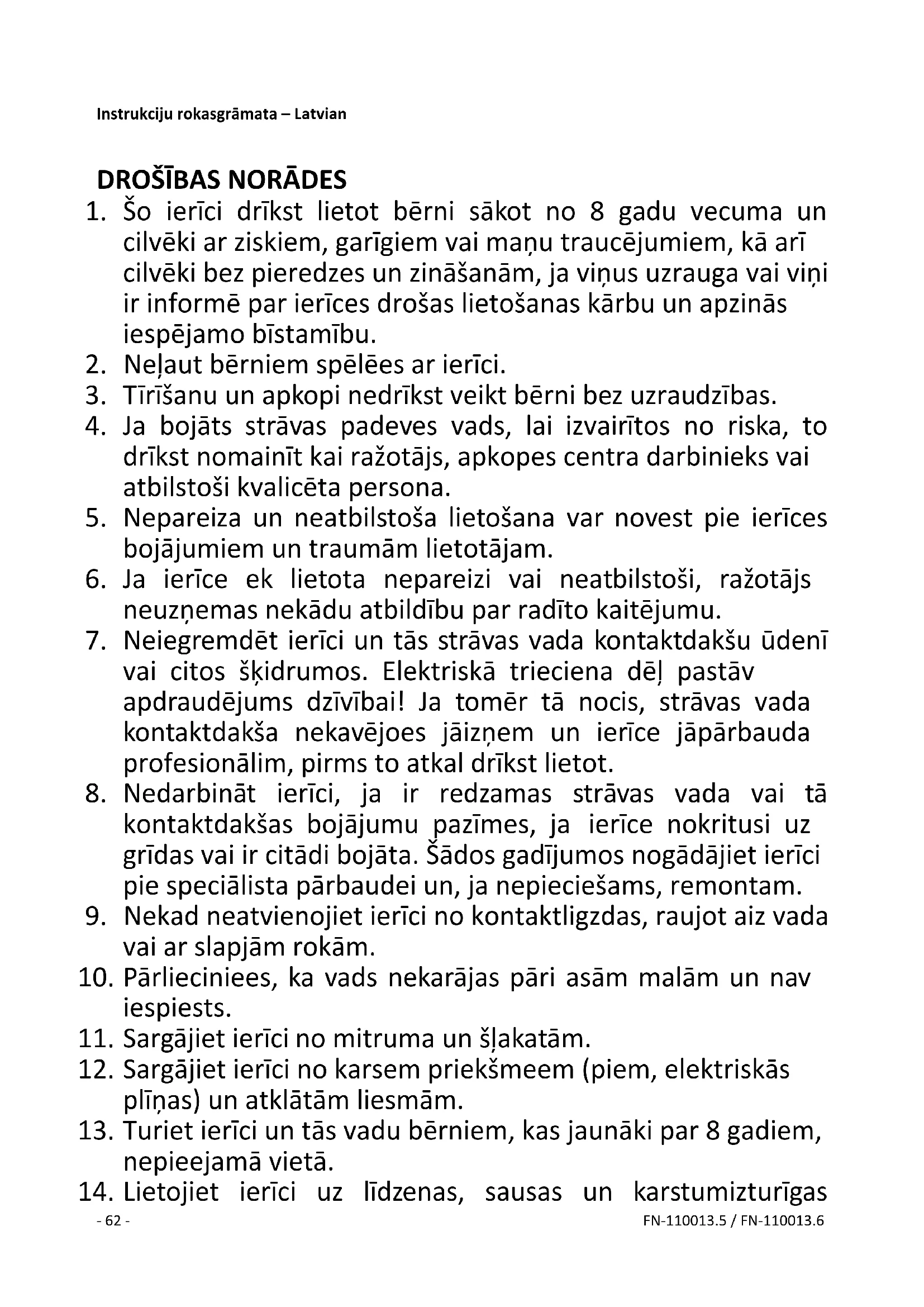 14. Lietojiet ierīci uz līdzenas, sausas un karstumizturīgas- 63 - FN-110013.5 / FN-110013.6