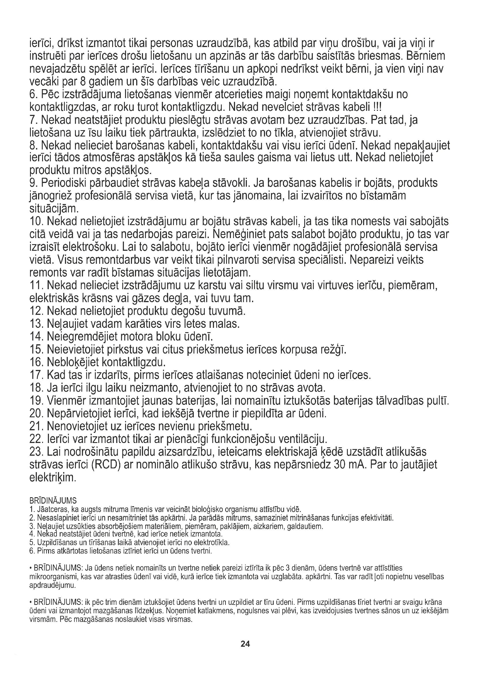 23. Lai nodrošinātu papildu aizsardzību, ieteicams elektriskajā ķēdē uzstādīt atlikušās